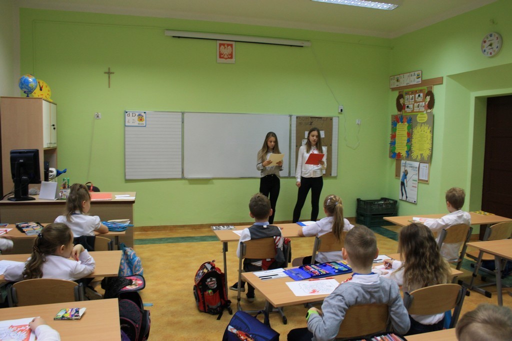 W naszej szkole 99 rocznicę tego historycznego wydarzenia obchodziliśmy w czwartek (9 listopada) podczas godzin wychowawczych. Zadaniem wszystkich zespołów klasowych było nagranie filmu ze swoją interpretacją Hymnu Polski. Następnie przedstawiciele Samorządu Uczniowskiego przypomnieli moment odzyskania niepodległości, zadali pytanie, co to znaczy być dziś Polakiem i jak na co dzień możemy godnie reprezentować naszą Ojczyznę.