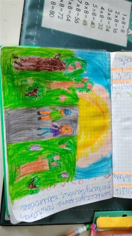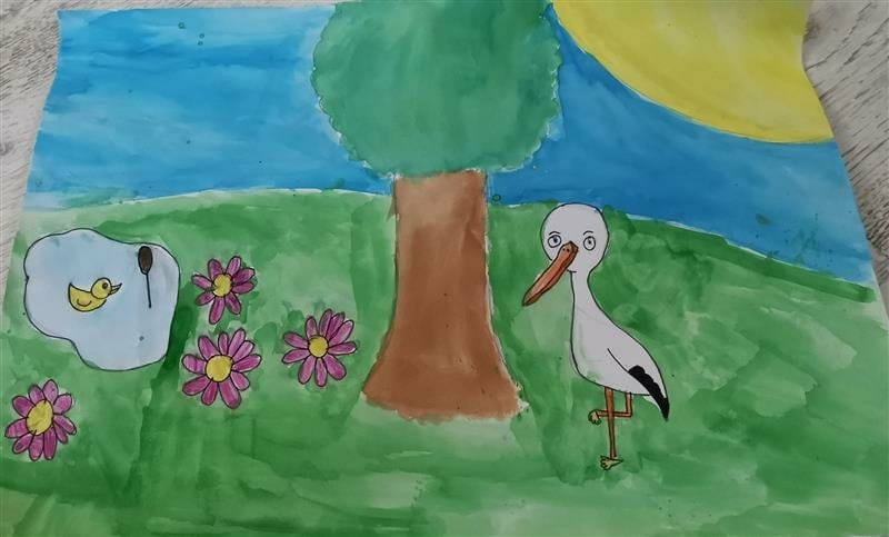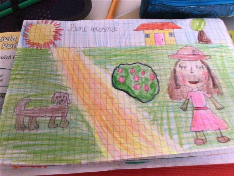 Mali ekolodzy z 2b z radością powitali tę porę roku, uczestnicząc we wczorajszych zajęciach z edukacji plastycznej. Z wielkim zaangażowaniem i za pomocą różnych technik wykonali ilustracje, przedstawiające zwiastuny wiosny. W efekcie powstały piękne portrety Pani Zieleni oraz krajobrazy z bocianem, skowronkiem, krokusami, tulipanami, żabkami i motylkami w roli głównej. Dzieci doskonale wykazały się swoją wiedzą z zakresu znajomości przyrody i uchwyciły subtelne piękno tej pory roku w swoich pracach.