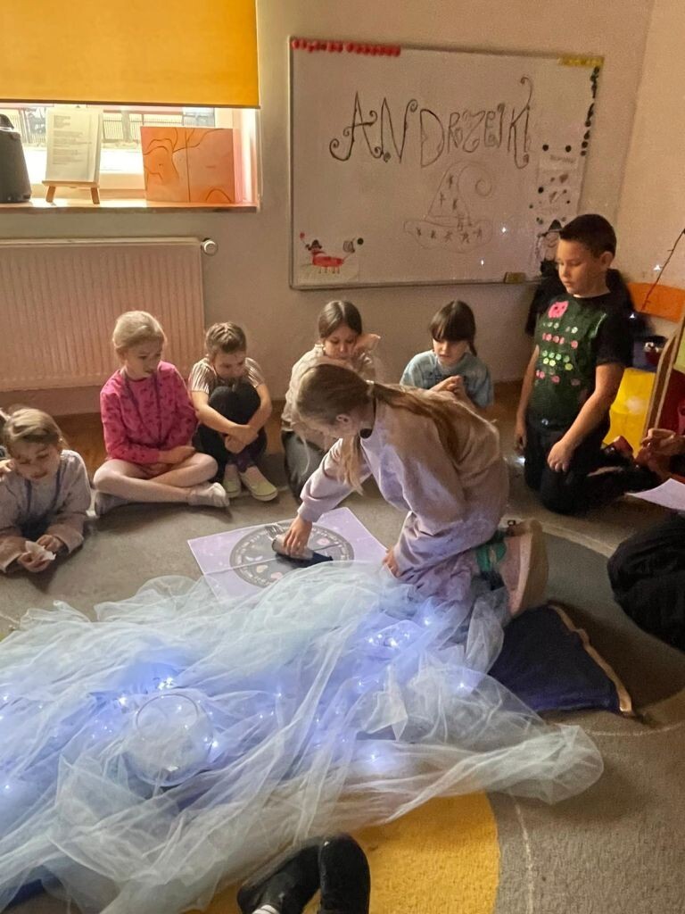 W szkolnej świetlicy również odbyły się andrzejki. Panie wychowawczynie przebrane za wróżki przeprowadziły zabawy andrzejkowe, dzięki którym uczniowie mogli poczuć magię andrzejkowych wróżb i zabaw.