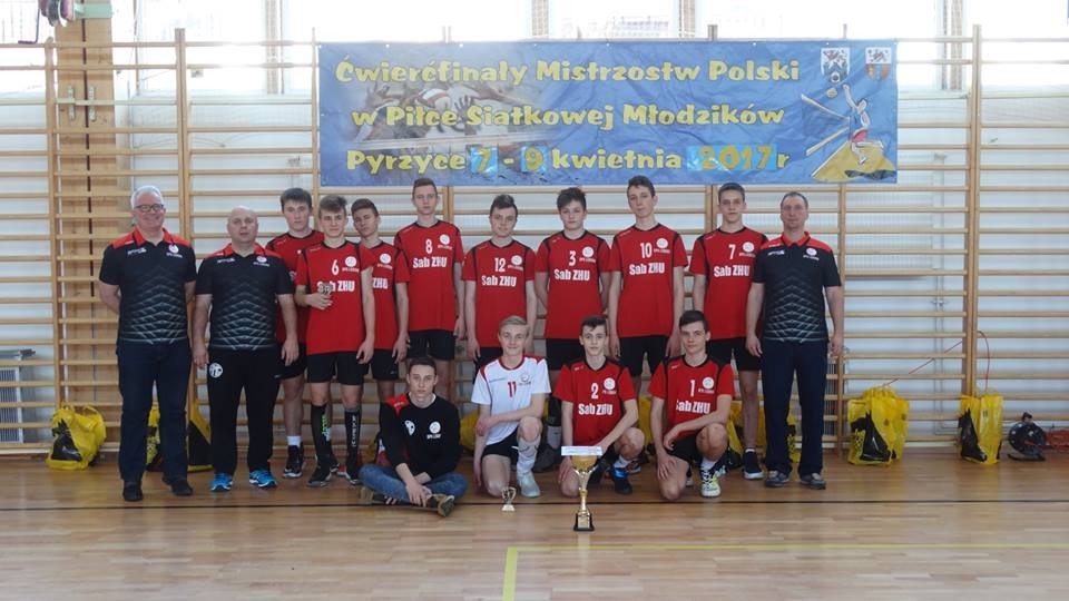 Nasza drużyna zawitała do Pyrzyc już w czwartek, ponieważ pierwszy mecz zaplanowano na piątek rano z Gimnazjum nr 3 Gorzów Wlkp. Pierwszy mecz to była dosyć łatwa przeprawa i wygrana 2:0. W drugim meczu GKS Rzemieślnik Kwilcz pokonał 2:0 Stocznię Darłowo. Po południu Orion Sulechów przegrał z Darłowem 0:2 , a gospodarze Żak Pyrzyce pokonali Gimnazjum nr 3 Gorzów Wlkp 2:0. W drugim dniu ,w sobotę, rozegraliśmy swój drugi mecz z gospodarzami turnieju. Przy ogłuszającym dopingu miejscowej publiczności wygraliśmy z Pyrzycami 2:0. W drugim porannym meczu Kwilcz pokonał Oriona Sulechów 2:0. Po południu rozegraliśmy swój trzeci mecz ze Stocznią Darłowo i wygraliśmy pewnie 2:0. Wygrana w drugim meczu Kwilcza z Żakiem Pyrzyce oznaczała , że SPS Lębork miał już zapewniony awans do 1/2 Mistrzostw Polski Młodzików przynajmniej z drugiego miejsca. W niedzielę zagraliśmy o pierwsze miejsce z Rzemieślnikiem Kwilcz. Po pierwszym przegranym secie nastąpiło przebudzenie naszego zespołu i ostatecznie wygraliśmy to spotkanie 2:1 oraz cały turniej, uzyskując awans do stawki 16 najlepszych drużyn w Polsce w tej kategorii wiekowej. Pierwsze miejsce oznacza , że SPS będzie wśród drużyn rozstawionych w losowaniu grup półfinałowych i jest szansa , że Lębork będzie gospodarzem takiego turnieju.