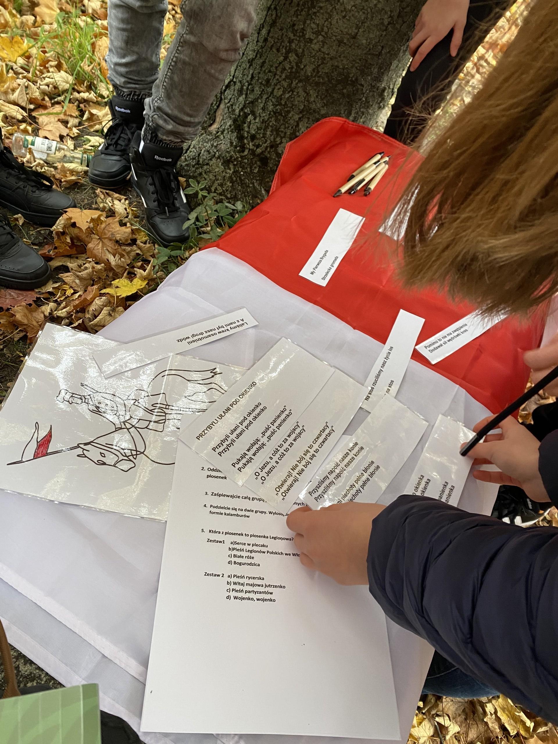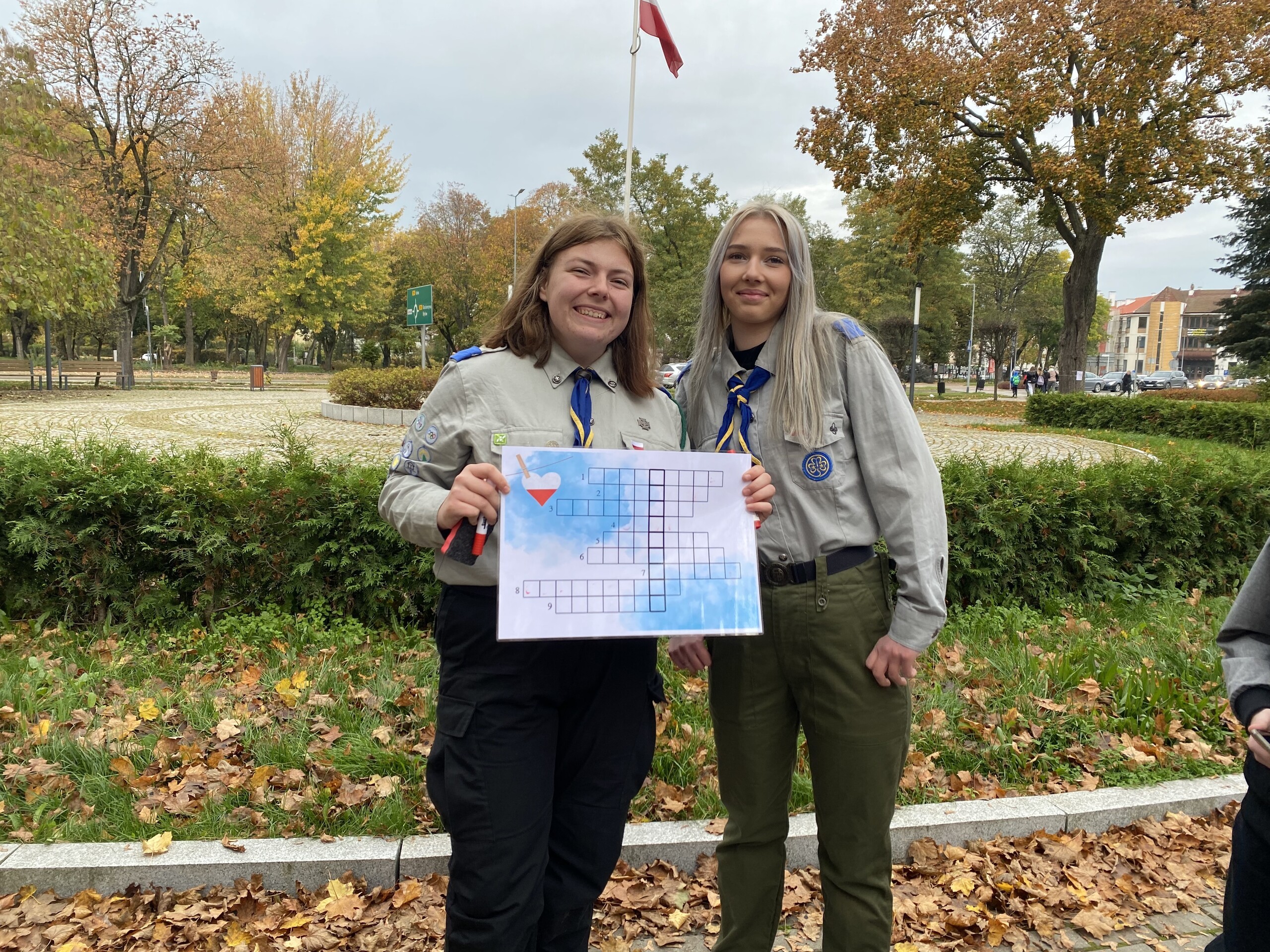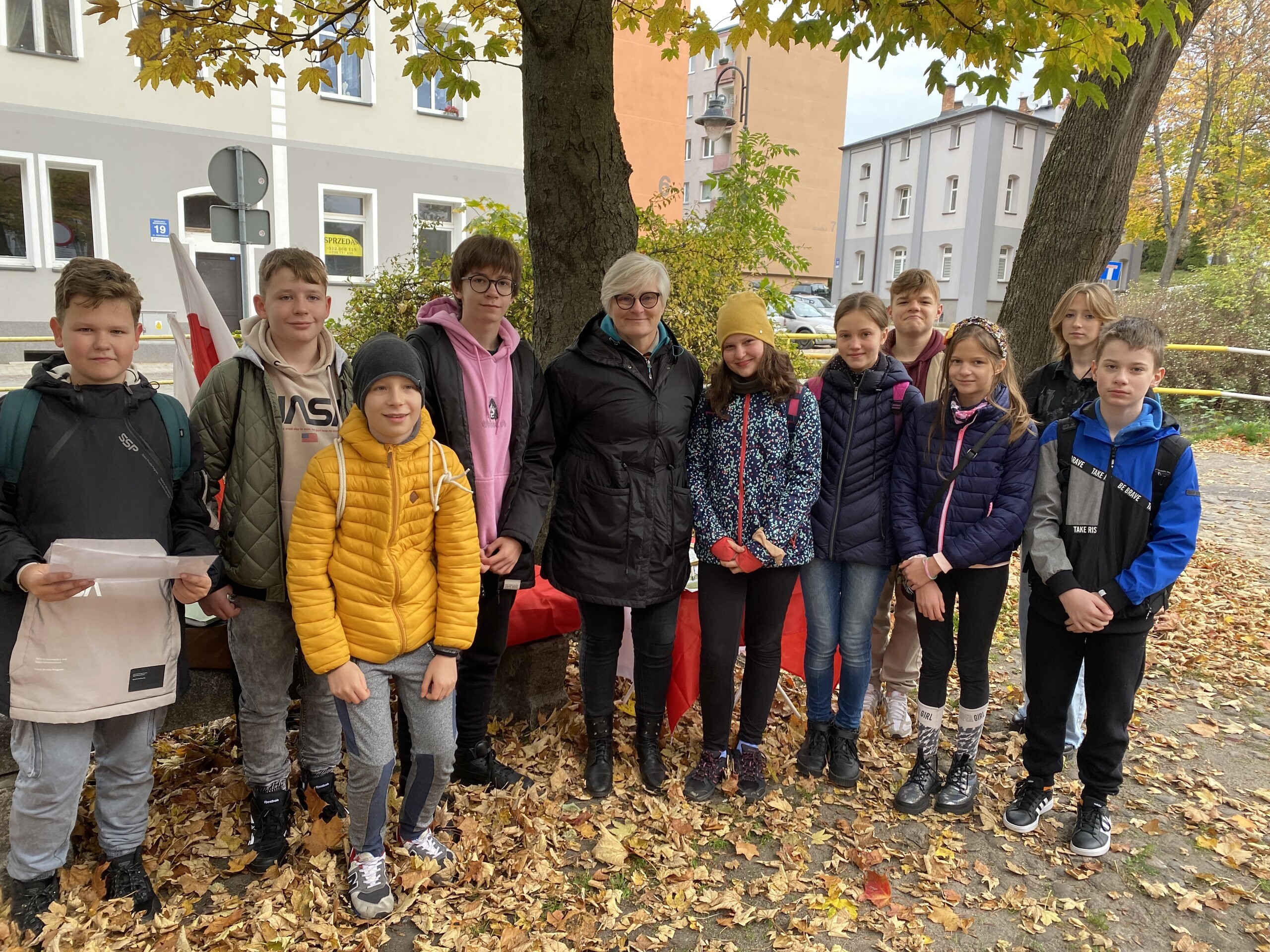Pod tym hasłem odbyła się w piątek, 21 października, gra terenowa przygotowana przez Związek Harcerstwa Polskiego w Lęborku we współpracy z Chorągwią Gdańską oraz lęborskim muzeum. Nasza szkołę reprezentowała grupa uczniów z klas V, VI i VIII. Każdy zespół otrzymał Kartę patrolową oraz plan sytuacyjny gry. Podzieleni na różne zadania mieliśmy okazję zgłębić historię naszego miasta oraz przypomnieć sobie podstawowe pojęcia związane z patriotyzmem oraz symbolami narodowymi państwa polskiego. Punkt zorganizowany pod lęborskim sądem był okazją do przypomnienia sobie słów pieśni legionowych. Kalambury w wykonaniu uczniów w tym miejscu sprzyjały przypomnieniu symboli narodowych. Przy obelisku Niepodległości przy pomocy kodów QR uczniowie rozszyfrowywali hasło do ułożonej krzyżówki. W tym miejscu dwie harcerki zapewniły także wspólne śpiewanie pląsów harcerskich. Lęborskie muzeum wyświetliło film o kształtowaniu granic w latach 1918-1922. Nie zabrakło odniesień do historii lokalnej. Uczniom przybliżono postaci walczące o przyłączenie ziemi lęborskiej do państwa polskiego po II wojnie światowej: Stefana Hazukę, ks. Szczepana Gracza czy Józefa Kustusza. Ostatnim akcentem dla naszej grupy była wizyta w siedzibie Hufca w Lęborku, gdzie uczniowie mogli samodzielnie wykonać własne kotyliony.