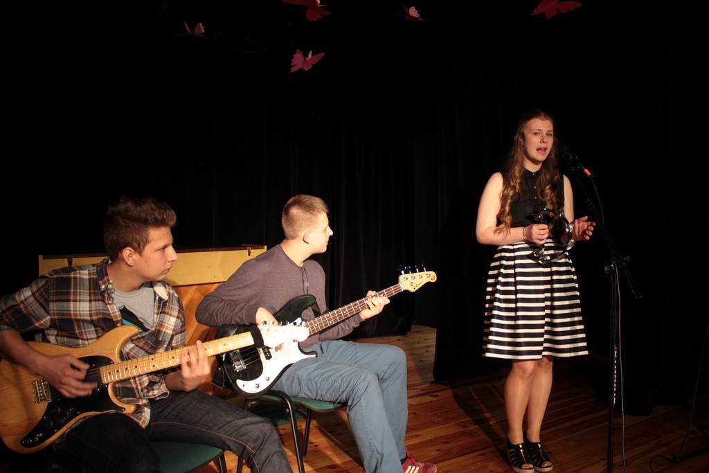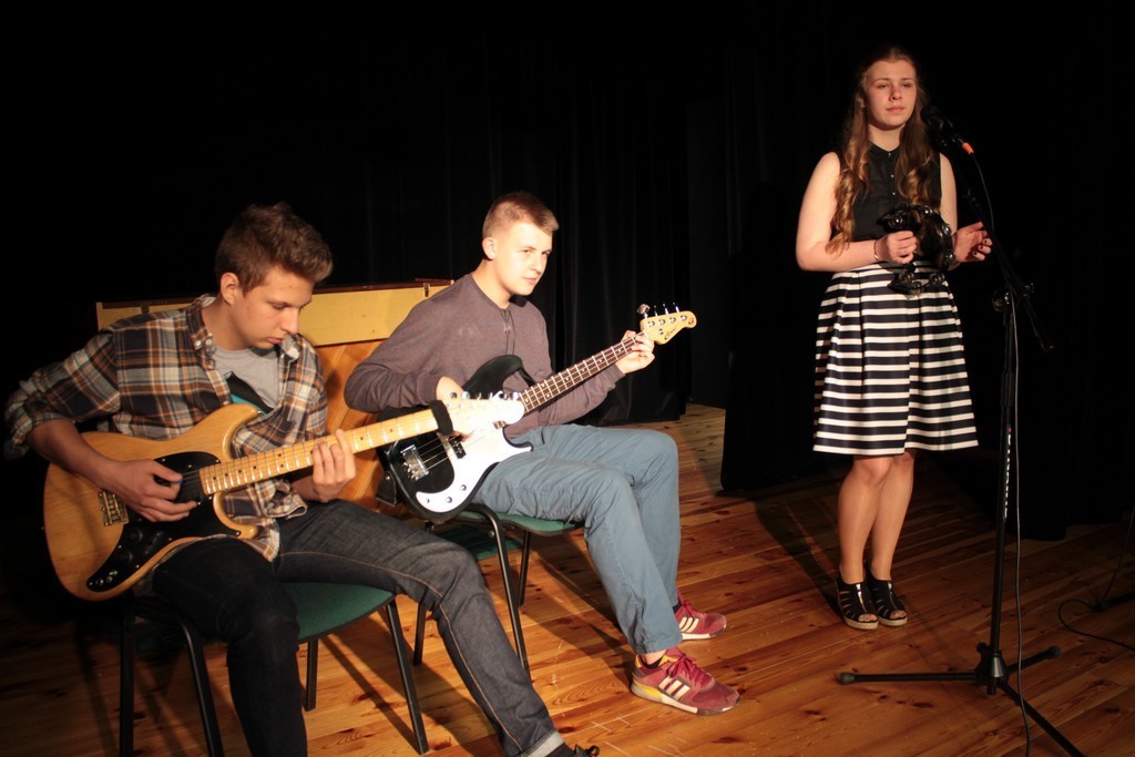 Należy docenić rolę gitarzystów – Jakuba Pszonaka IIIb (gitara) i Oskara Michalaka IIa (gitara basowa) towarzyszących Klaudii w czasie występu. Brawo, gratulujemy!