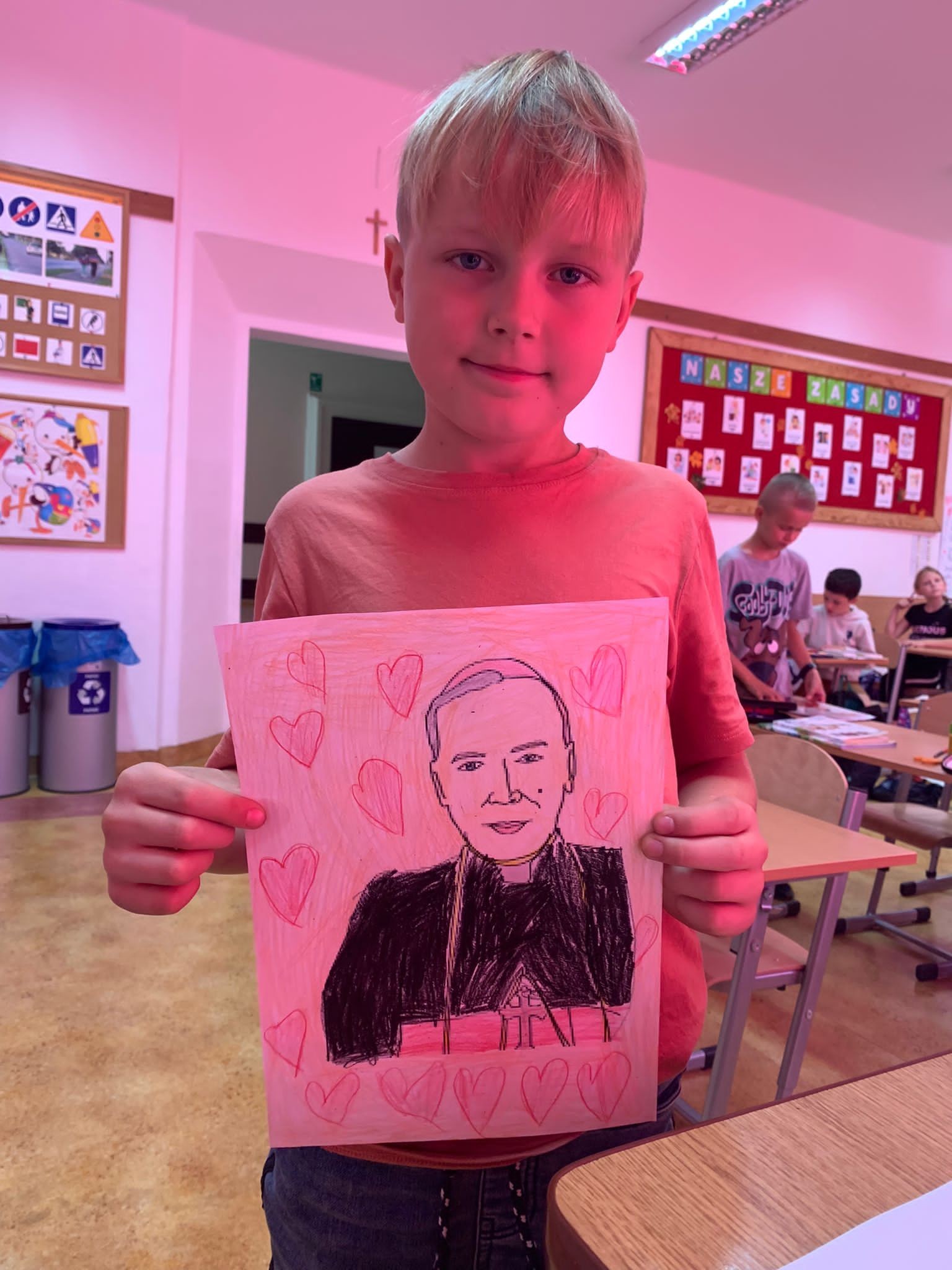 W niedzielę, 12 września w Polsce miała miejsce wyjątkowa uroczystość związana z zakończeniem procesu beatyfikacyjnego Prymasa Tysiąclecia. Duchowy przywódca narodu w czasach komunizmu ma na swoim koncie wiele inicjatyw podjętych na rzecz Kościoła w Polsce. Jego przyjaźń z Janem Pawłem II, zawierzenie Maryi zaprowadziły Karola Wojtyłę na Stolicę Apostolską. Podczas zajęć religii uczniowie zapoznali się z życiorysem Księdza Prymasa. Najmłodsze klasy przygotowały portrety Kardynała Wyszyńskiego. Nauczyciele przygotowali tez tablicę poświęconą postaci Sługi Bożego.