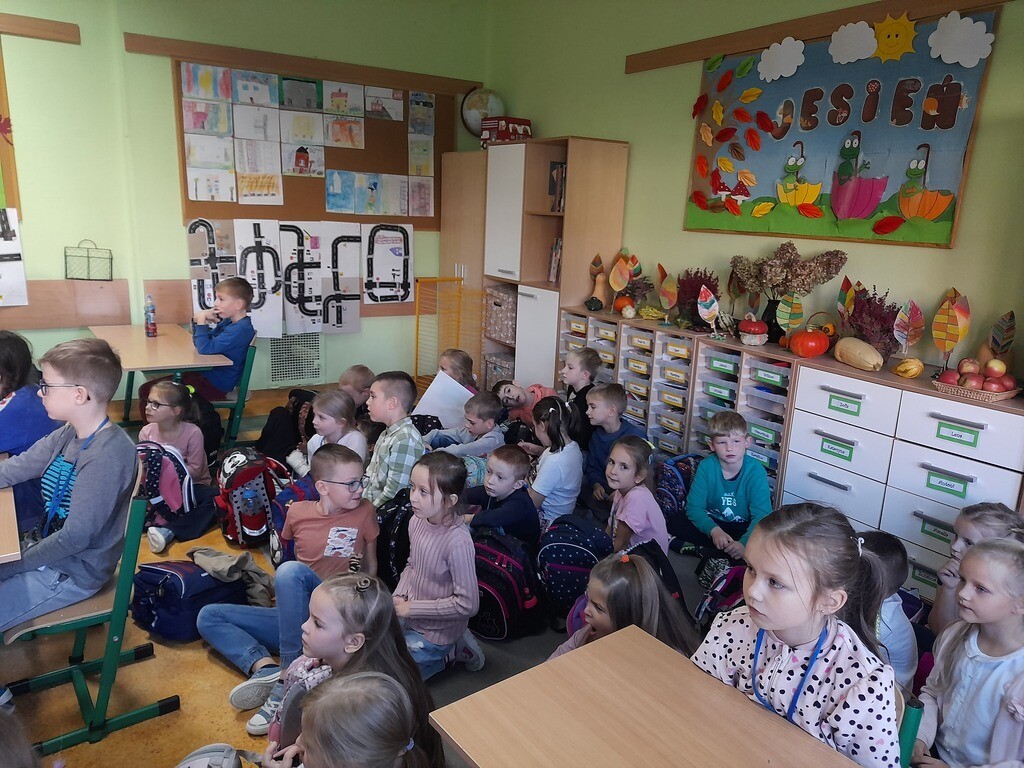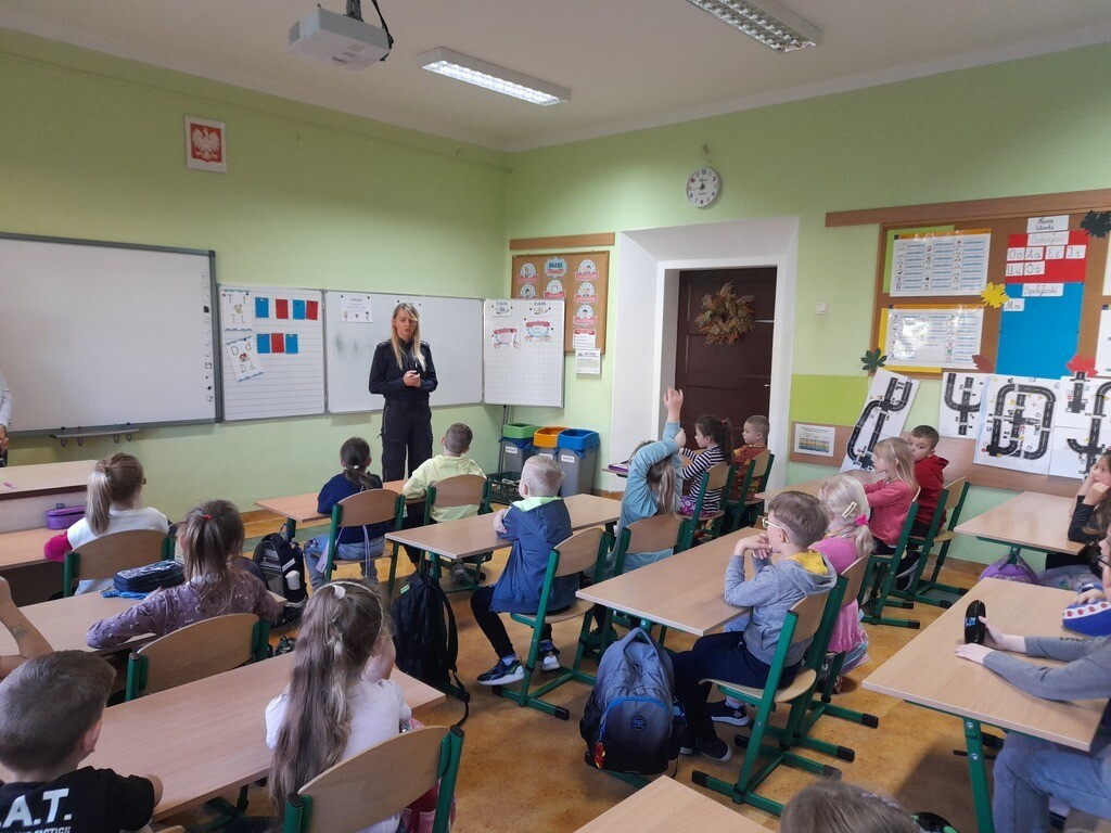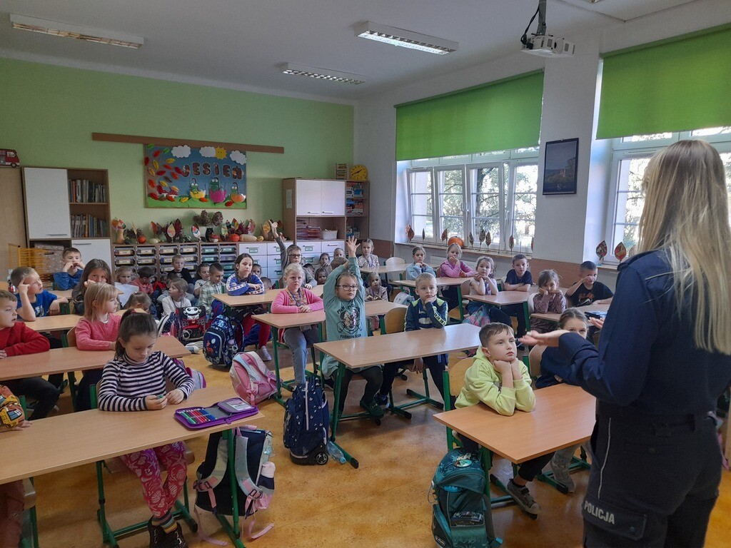 Pod takim hasłem 17 października odbyło się spotkanie uczniów klas pierwszych z funkcjonariuszką Komendy Powiatowej Policji w Lęborku mł.asp. Martą Bąciaszek. Pani policjantka przypomniała pierwszoklasistom zasady bezpiecznego zachowania na drodze, w tym jak prawidłowo przechodzić przez jezdnię oraz jak bezpiecznie poruszać się na rowerze, deskorolce, czy hulajnodze. Wytłumaczyła na czym polega ostrożność wobec osób obcych oraz objaśniła zasady korzystania z numerów alarmowych. Spotkanie odbyło się w ramach Akademii Bezpiecznego Puchatka, czyli ogólnopolskiego programu edukacyjnego, obejmującego tematykę związaną z bezpieczeństwem dzieci w czterech sferach: na drodze, w domu, w szkole oraz w Internecie.