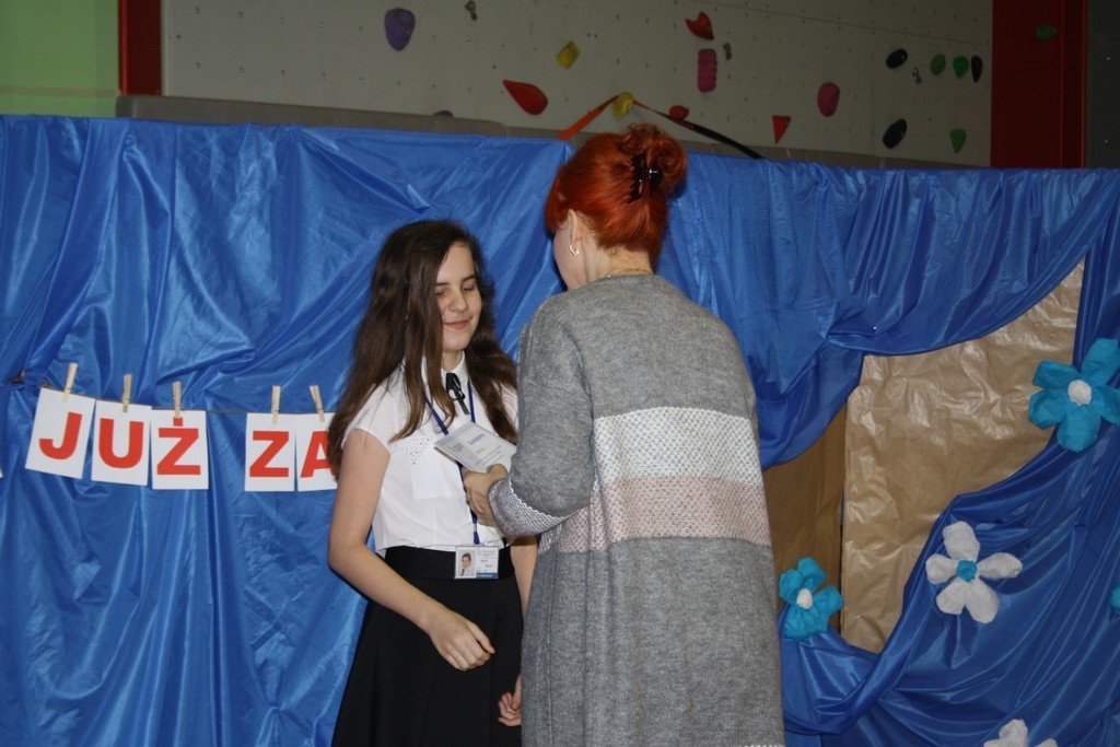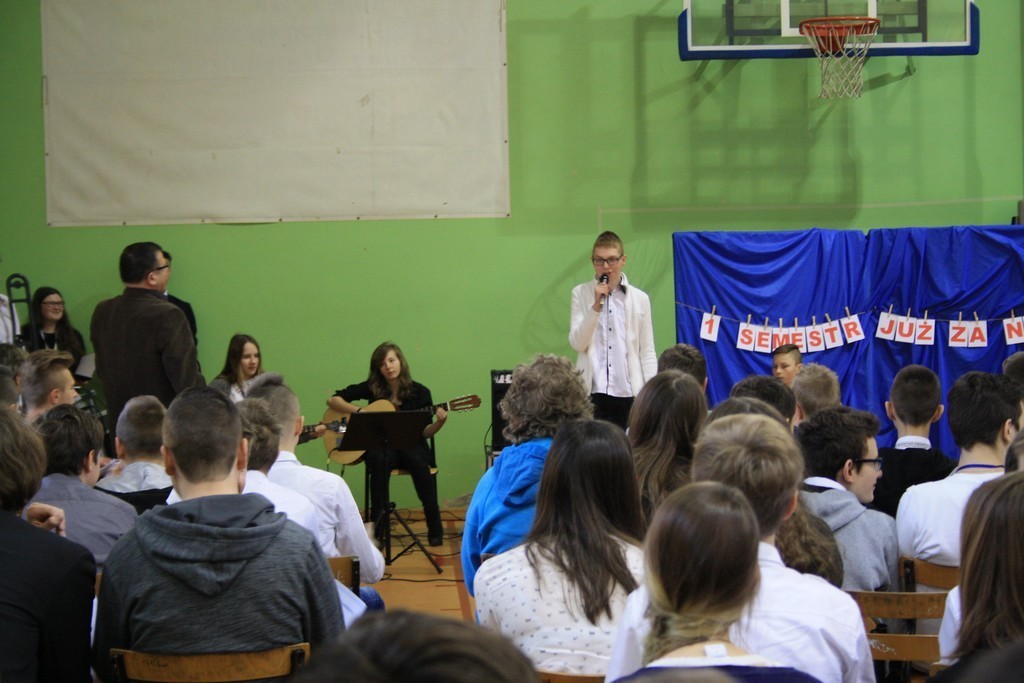 W minioną środę – 1 lutego - gimnazjaliści uczestniczyli w apelu podsumowującym wydarzenia minionego półrocza. W roli konferansjerów prowadzących „Wydarzenia Jedynki” wystąpili Natalia Kobiella z klasy IId oraz Maksymilian Milanowski z IIIc. Nie zabrakło również występu zespołu wokalnego „Witamina M", pod kierunkiem p. A. Łakockiego oraz popisów grupy tanecznej „Tempo” i dziewcząt z klasy IIIc.