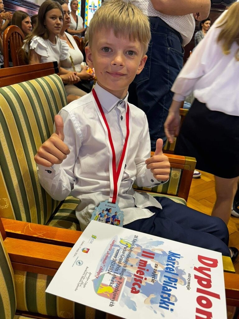 · w kategorii Szkoły Podstawowe „krasnale” (rocznik 2016 i 2015) – około 460 m, miejsce II zajął Marcel Pilarski – uczeń klasy IIb