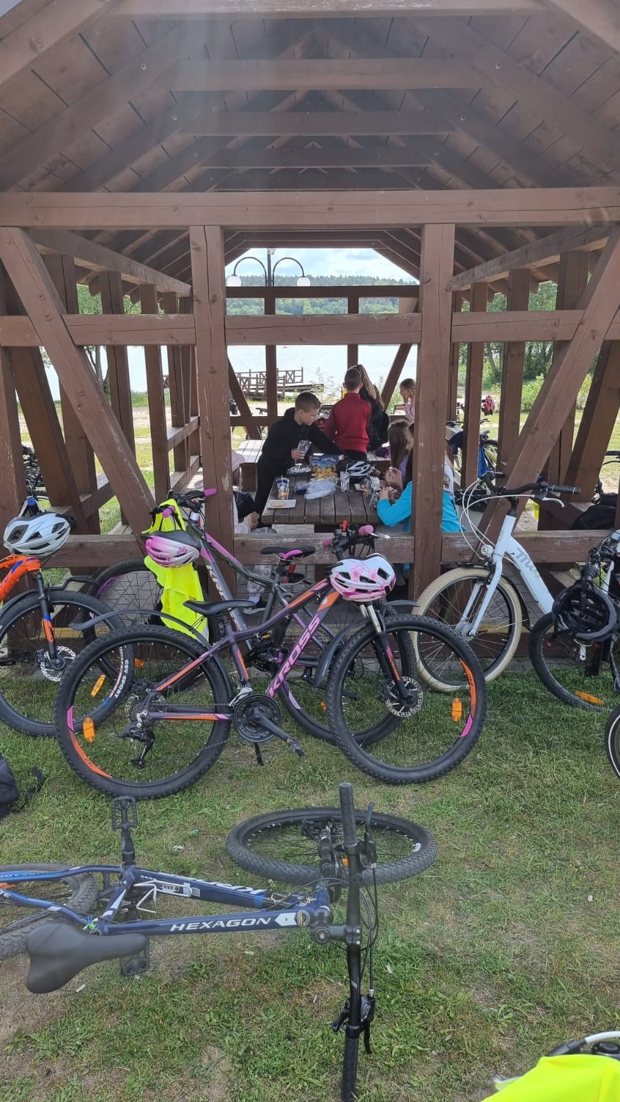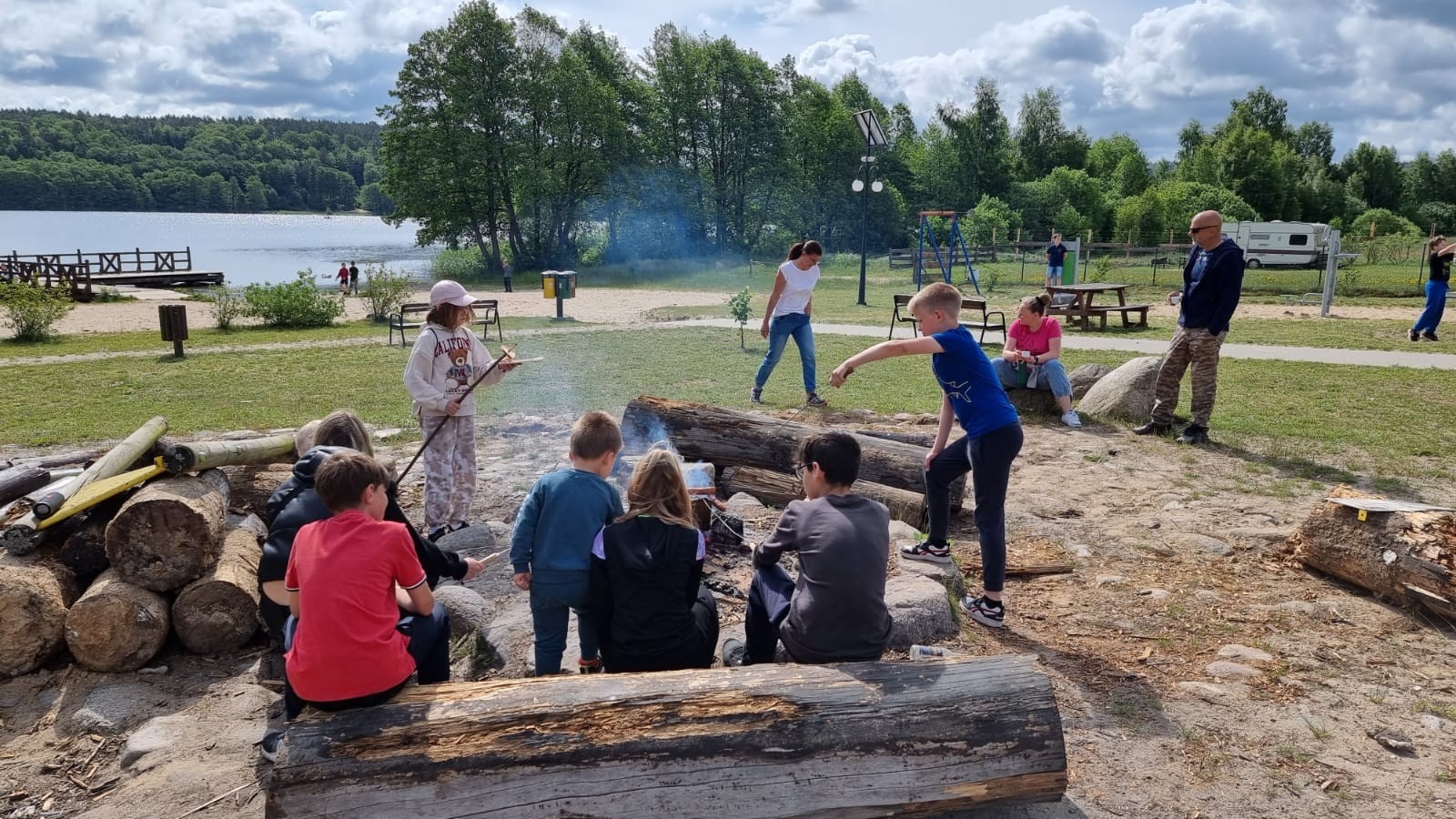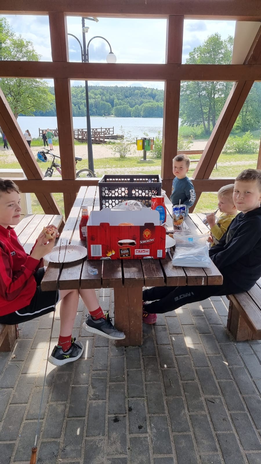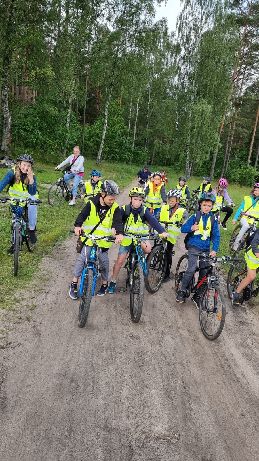 Kolejną wspólną wyprawą klasy 4c był rajd rowerowy, na który uczniowie wyruszyli z p. Jackiem Dziekanowskim oraz z p. Adamem Ziółek. Wystartowali ze szkoły i ścieżkami rowerowymi dojechali do lasu przy ulicy Kaszubskiej. Stamtąd rowerzyści pojechali bezpieczną drogą przez las do os. Wschód Lębork aż do plaży przy Jeziorze Lubowidzkim. Tam czekały na nich wspaniałe mamy, które wcześniej rozpaliły ognisko. Zmęczeni czwartoklasiści mogli upiec sobie kiełbaski i zjeść je w znakomitym towarzystwie. Nie zabrakło też wspólnej zabawy i gry w piłkę.