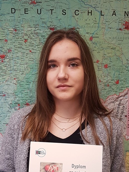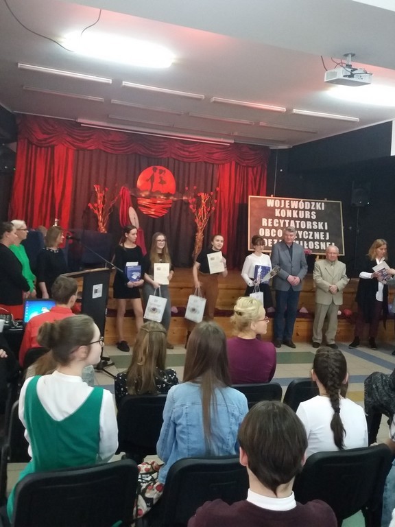 Naszą szkołę reprezentowali: Amelia Gołębiowska z gimnazjum – język niemiecki, a także Kinga Kuczwalska, Bartosz Kabała z gimnazjum oraz Julia Cholka i Zofia Woss z klasy VIII – język angielski. Jesteśmy niezmiernie dumni, ponieważ nasza uczennica Amelia Gołębiowska z klasy IIIa zajęła II miejsce wspaniale prezentując utwór Kurta Tucholsky’ego pt.: „Ehekrach”. Serdecznie gratulujemy!