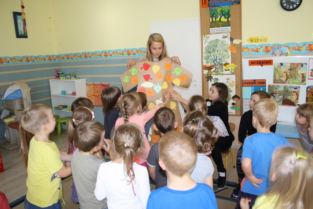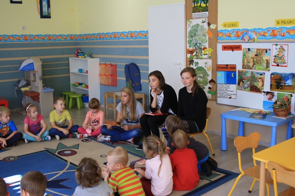 W ramach projektu organizowanego przez Centrum Edukacji Obywatelskiej przystąpiliśmy do programu „PoczytajMy” i rozpoczęliśmy cykl głośnego czytania dzieciom. Nasze pierwsze czytelnicze spotkanie odbyło się w przedszkolu nr 1 w Lęborku z grupą pięciolatków. Tematem przewodnim stała się jesień. Uczennice z klasy Ib zaprezentowały przedszkolakom utwory związane z tą porą roku, na zakończenie zaś maluchy przygotowały suknię dla Pani Jesieni.