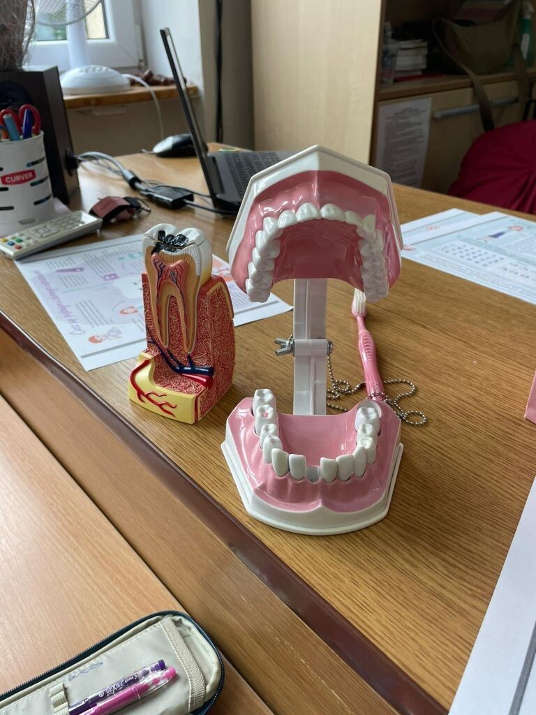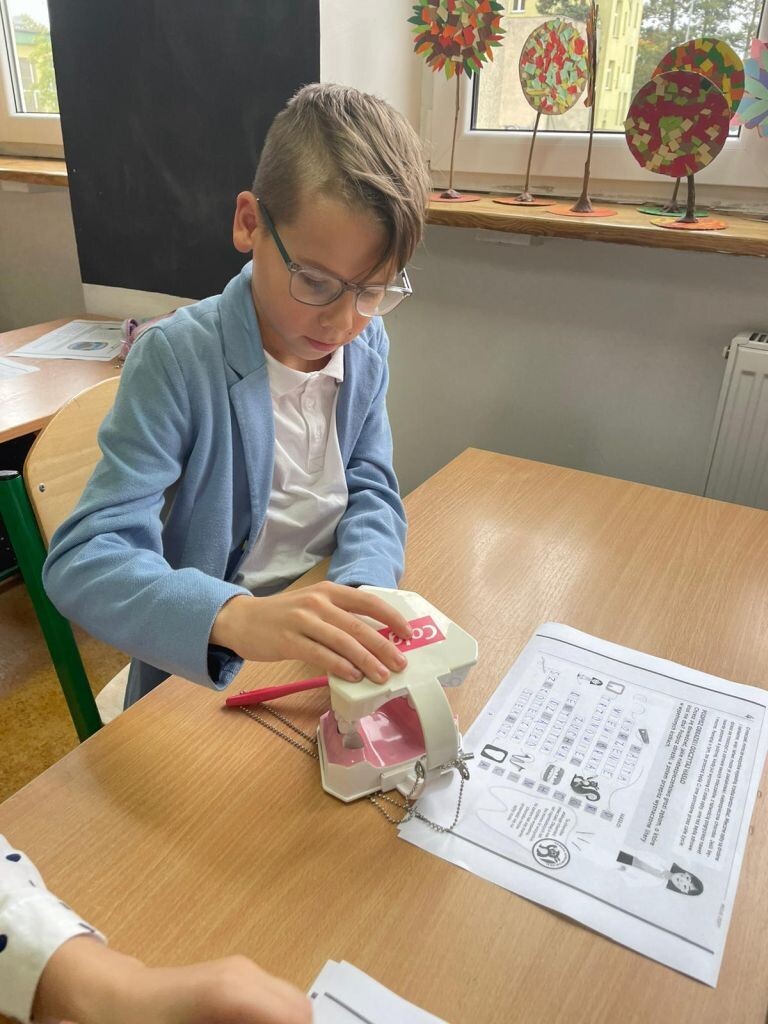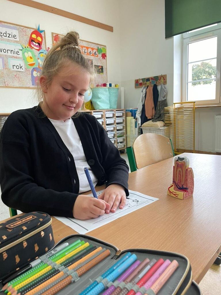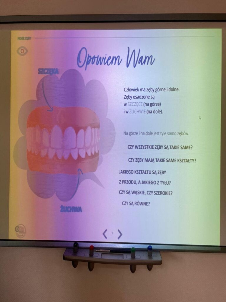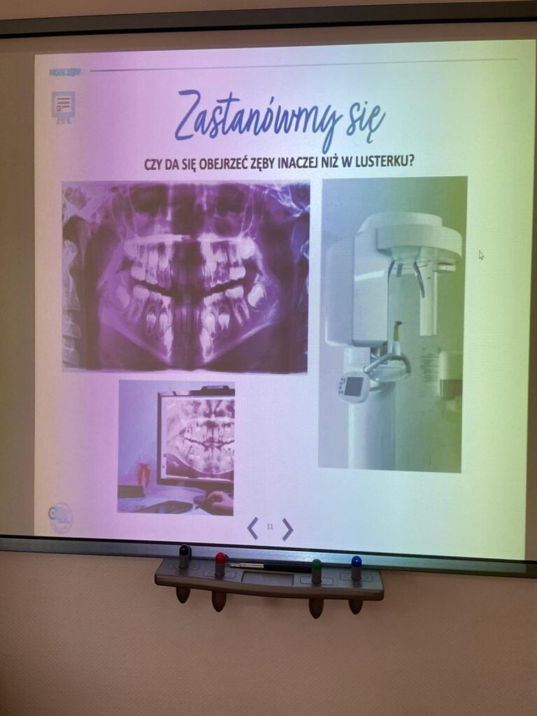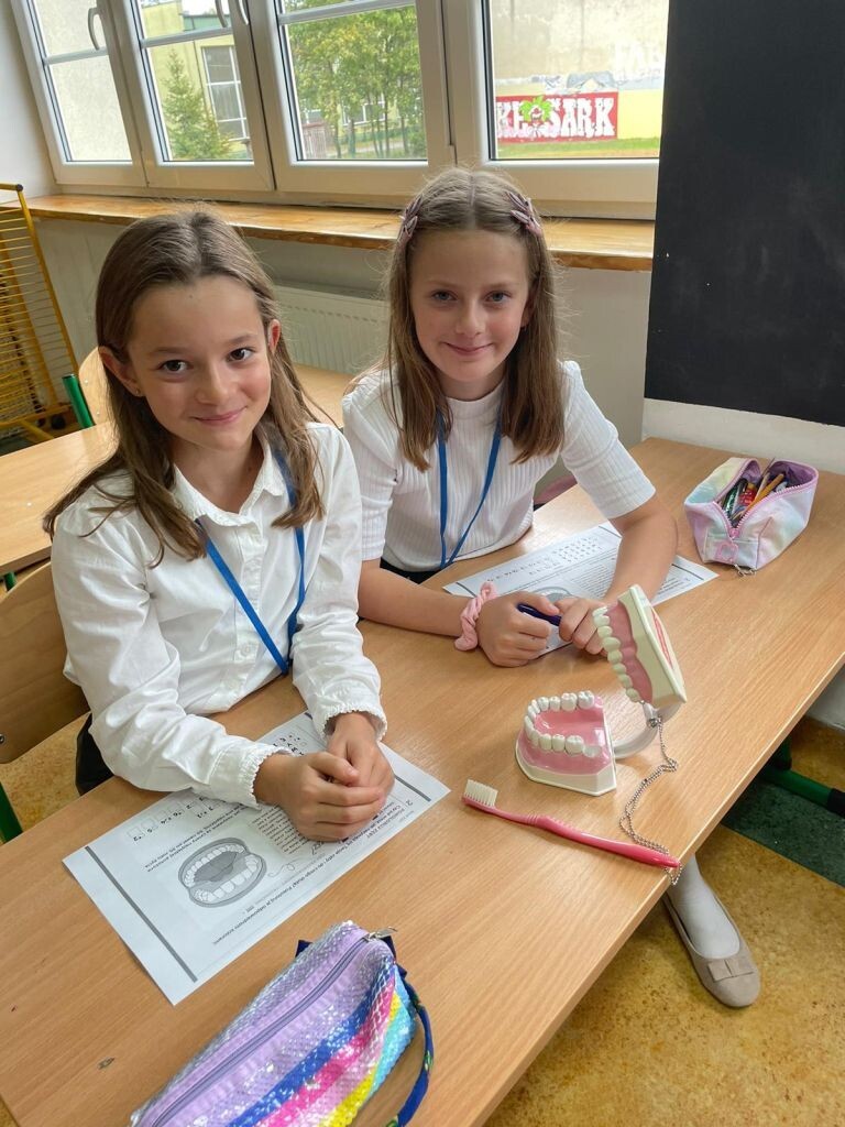 Czym różni się żuchwa od szczęki? Czy zęby trzeba myć 2 minuty? Czy uzębienie człowieka świadczy o tym, że jesteśmy roślinożerni czy mięsożerni? Co to jest miazga? Czy zęby stałe są na zawsze? Na te i inne ciekawe pytania uczniów klasy IIIb odpowiadała lekarz dentysta Agata Knura. W miniony piątek dr Agata opowiadała o prawidłowej higienie jamy ustnej. Uczniowie IIIb z zainteresowaniem słuchali i zadawali mnóstwo pytań, oglądali modele zębów i jamy ustnej. Rozwiązywali krzyżówki, wzięli udział w quizie. W nagrodę wszyscy otrzymali kolorowe naklejki "Dzielny pacjent".