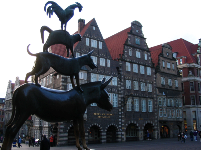 Oryginalny posąg „Muzykantów z miasta Bremy”- ukochanej bajki braci Grimm - jest najbardziej znaną wizytówką miasta Brema i znajduje się po lewej stronie ratusza. Legendy mówią, że po sfotografowaniu posągu należy złapać za nogi „osła”, aby mieć w przyszłości szczęście. Tak też robią wszyscy turyści zwiedzający to piękne miasto.