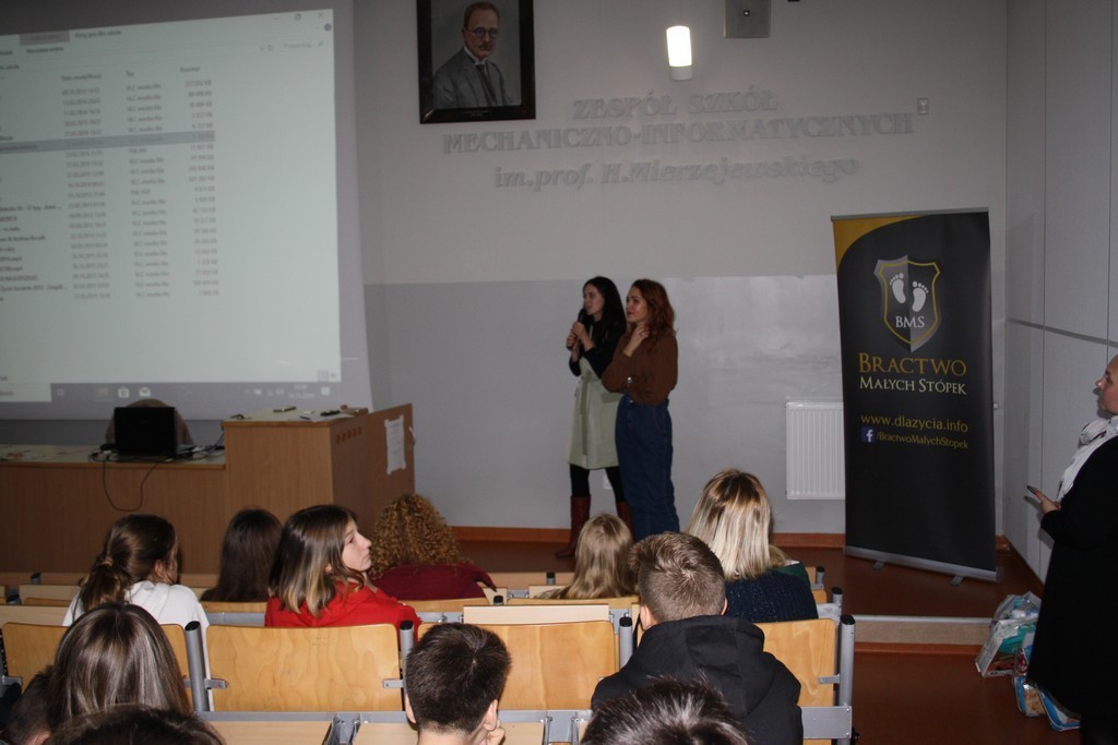 Zakończyliśmy akcję pod hasłem „Pielucha dla malucha”. Prze dwa tygodnie zbieraliśmy jednorazowe pieluszki oraz artykuły do pielęgnacji niemowląt, które przekazane zostały przedstawicielkom fundacji „Bractwo Małych Stópek”. 14 listopada uczniowie klasy 8d uczestniczyli również w spotkaniu zorganizowanym w ZSM-I, podczas którego panie z fundacji przekazały najistotniejsze informacje dotyczące ich działalności.