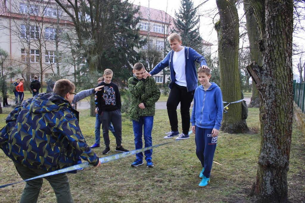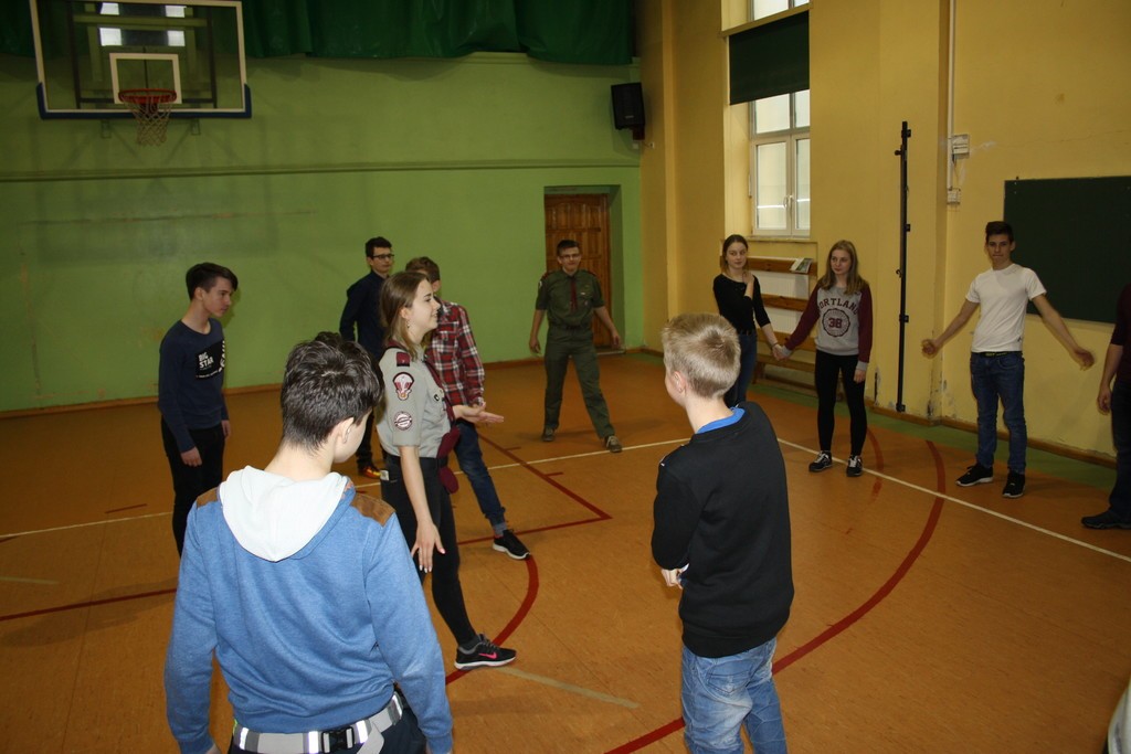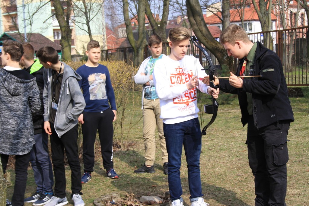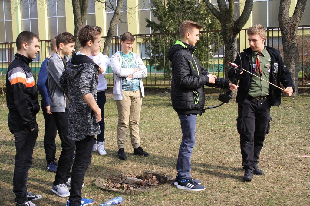 Podczas lekcji wychowania fizycznego nasi uczniowie mogli uczestniczyć w zajęciach sprawnościowych przygotowanych przez grupę harcerzy. Wśród konkurencji znalazły się: strzelanie z łuku, chodzenie po taśmie, bieg w maskach a także zabawy harcerskie. Podczas przerw można było spróbować również pysznych wypieków. Spotkanie zorganizowane zostało dla tych, którzy chcieliby dołączyć do drużyny i przeżyć niepowtarzalną, harcerską przygodę.