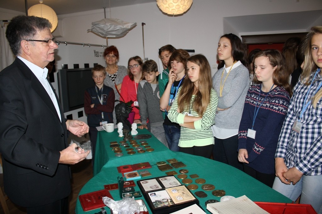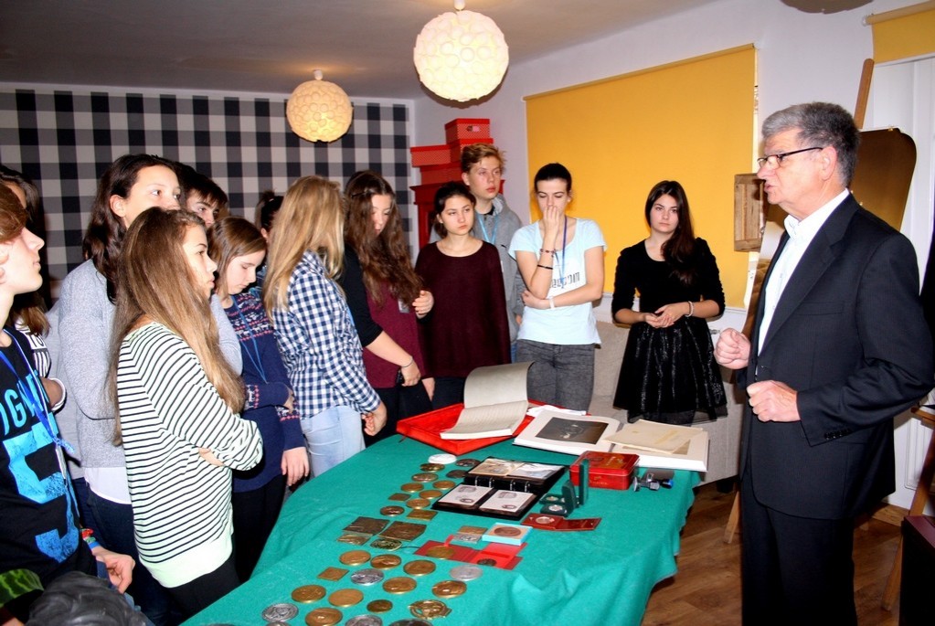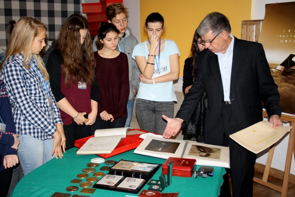 Grupa gimnazjalistów z niezwykłą uwagą i skupieniem wysłuchała bardzo ciekawej pogadanki dotyczącej naszego wybitnego kompozytora. Znalazły się w niej ciekawostki, anegdoty. Młodzież miała niepowtarzalną okazję zobaczenia wielu zgromadzonych pamiątek: pocztówek, książek, plakatów, rzeźb, obrazów, pamiątkowych medali.