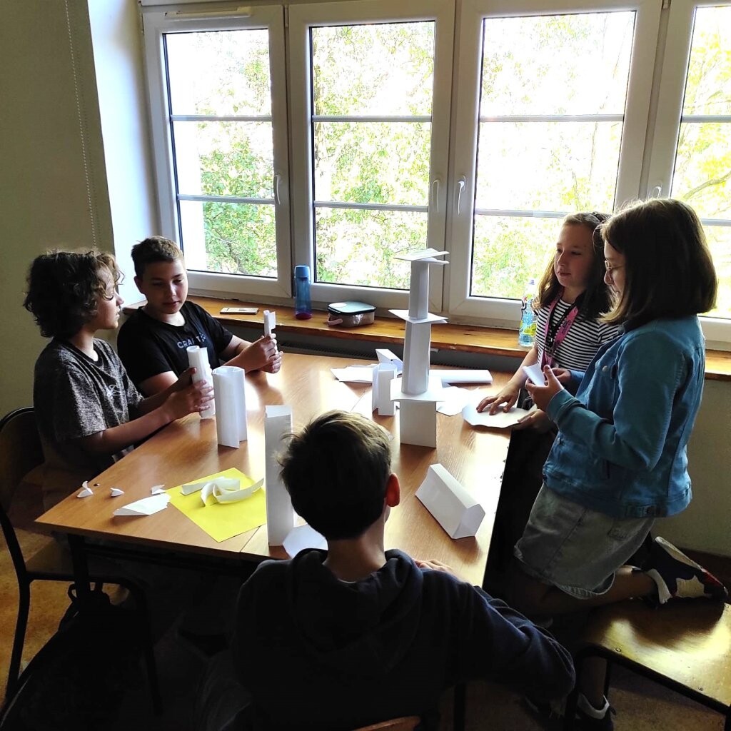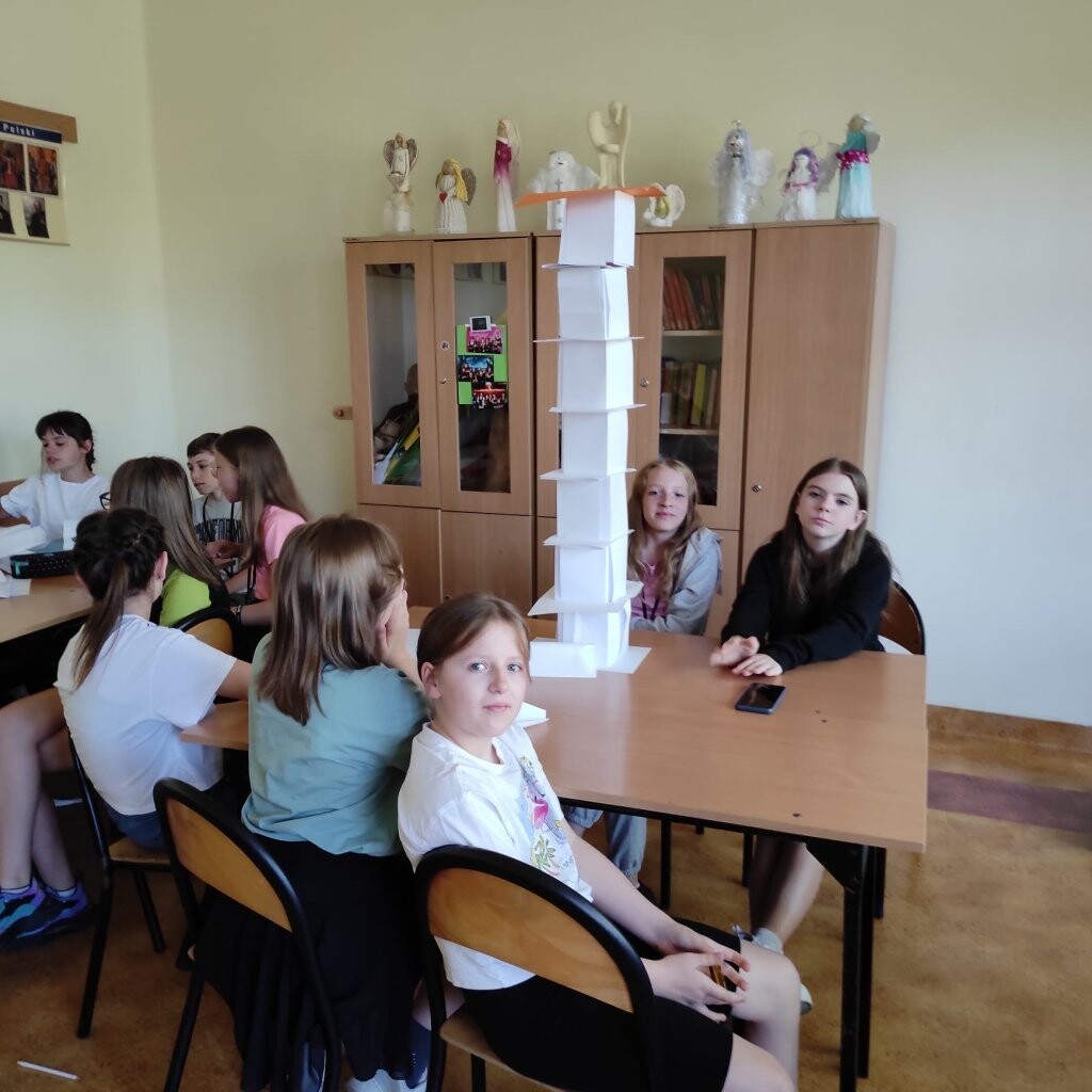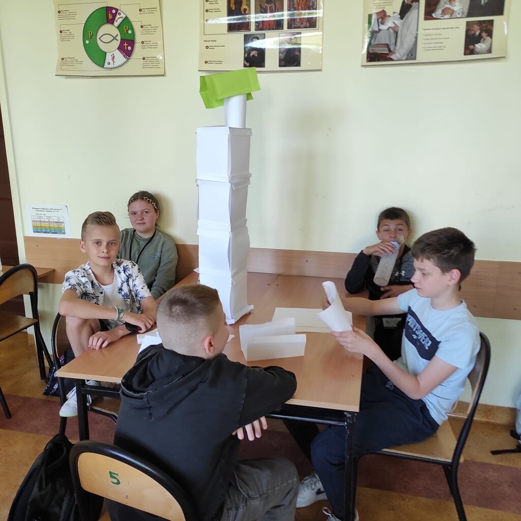 Na lekcji wychowawczej uczniowie klasy Va otrzymali nietypowe zadanie zbudowania jak najwyższej budowli z ... papieru. Piątoklasiści zostali podzieleni na grupy. Jak się okazało, nie było to łatwe zadanie, ponieważ podczas jego realizacji nie można było używać nożyczek, kleju, czy taśmy klejącej. Mimo utrudnienia wszystkim grupom udało się wykonać zadanie, a twórcy najwyższych budowli zgodnie stwierdzili, że pomogła im dobra strategia i współpraca.
