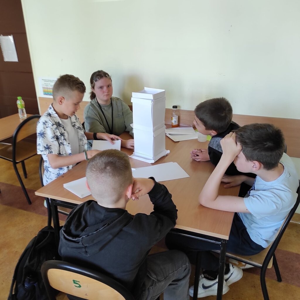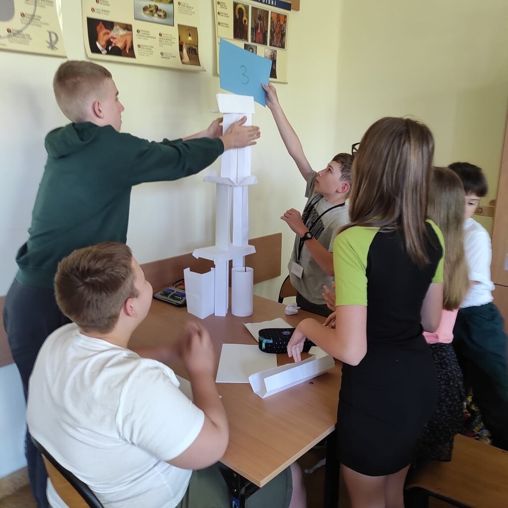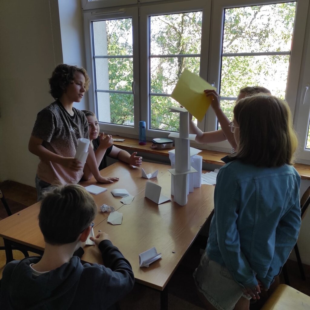 Na lekcji wychowawczej uczniowie klasy Va otrzymali nietypowe zadanie zbudowania jak najwyższej budowli z ... papieru. Piątoklasiści zostali podzieleni na grupy. Jak się okazało, nie było to łatwe zadanie, ponieważ podczas jego realizacji nie można było używać nożyczek, kleju, czy taśmy klejącej. Mimo utrudnienia wszystkim grupom udało się wykonać zadanie, a twórcy najwyższych budowli zgodnie stwierdzili, że pomogła im dobra strategia i współpraca.