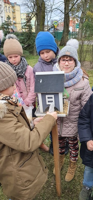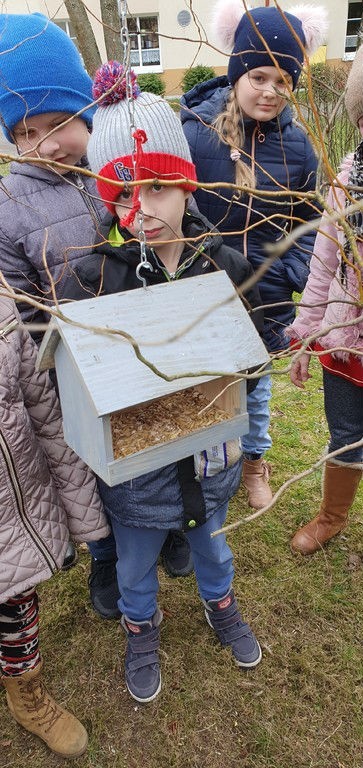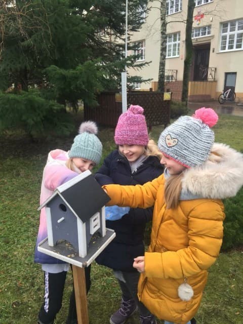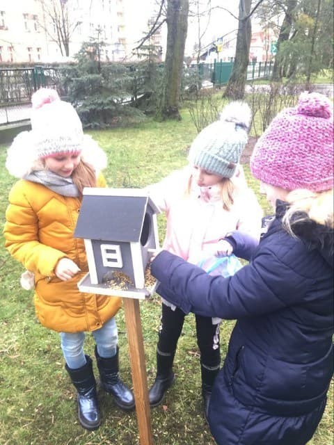 Bieżący rok szkolny, podobnie jak poprzednie, obfituje w rozmaite akcje organizowane przez Samorząd Uczniowski działający w naszej placówce. Tym razem przedstawiciele samorządu podjęli akcję dokarmiania ptaków. Wiadomo, że zima to czas, kiedy naszym skrzydlatym przyjaciołom najtrudniej zdobyć pożywienie, dlatego uczniowie postanowli o to zadbać. Z ich inicjatywy na terenie szkolnego ogródka zostały umieszczone karmniki dla ptaków, które codziennie uzupełniane są przez uczniów. Każda klasa pełni cotygodniowe dyżury, podczas których ma za zadanie obsługiwać ,,ptasią stołówkę". Musimy przyznać, że nasi uczniowie chętnie i z ogromnym zapałem przystąpili do tej akcji, na bieżąco dokarmiają swoich podopiecznych, karmniki zawsze są pełne, gotowe na przyjęcie skrzydlatych gości.