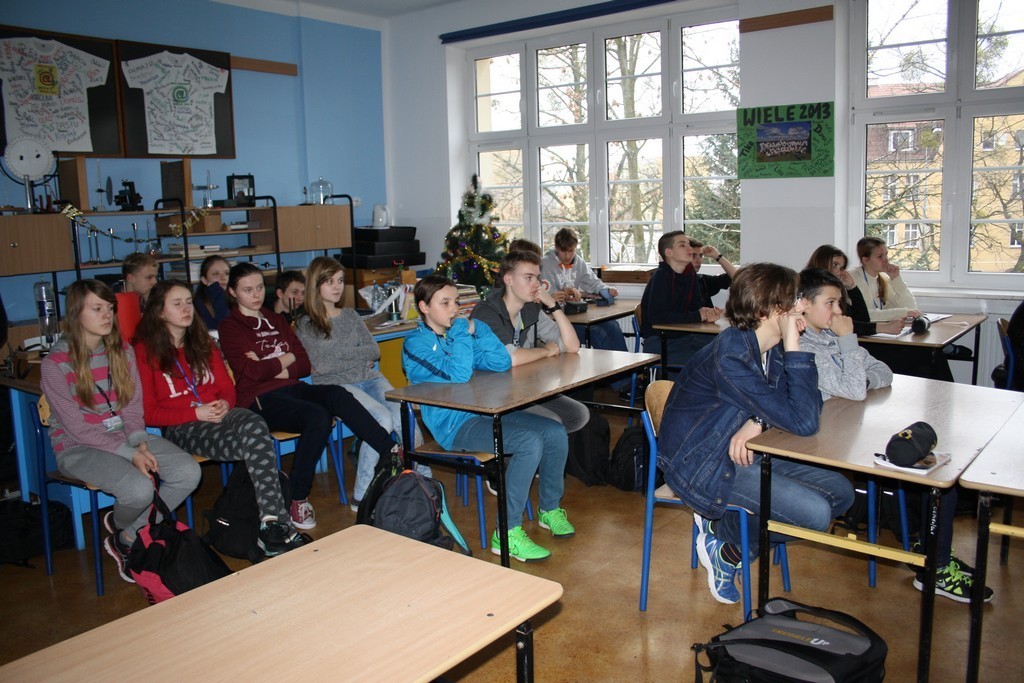 Piątek to dzień wyjazdu na zajęcia z fizyki na Wydziale Matematyki, Fizyki i Informatyki UG. Pierwsze dwie godziny prowadził dr G. Gondek. Zajęcia realizowane w języku angielskim dotyczyły problemów zastosowania techniki laserowej w diagnozie medycznej i stomatologicznej. Uczniowie poznali metody i narzędzia niezbędne do prowadzenia badań oraz problemy na jakie trafiamy przy ich realizacji.