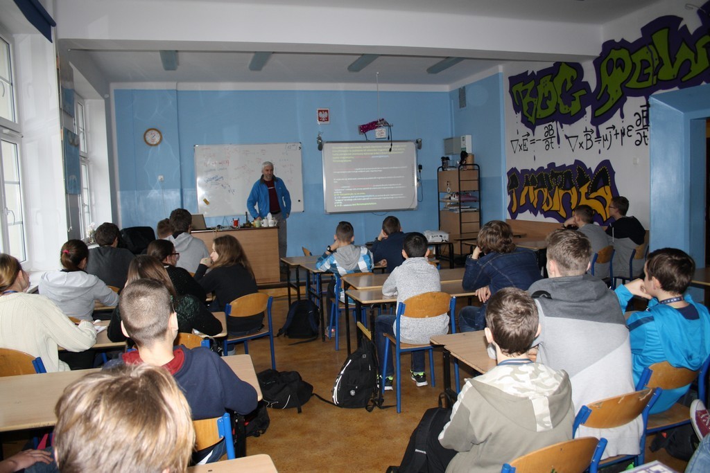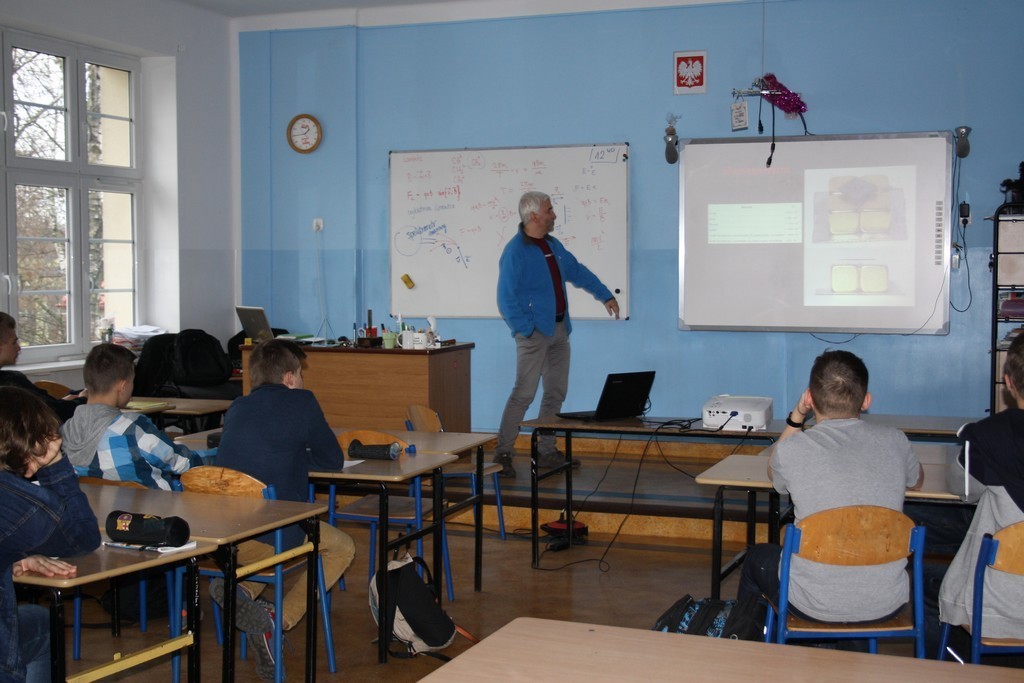 Wykład dla wszystkich uczniów był nawiązaniem do wcześniejszych zajęć. Magnetyzm Ziemi i jego znaczenie dla powstania oraz istnienia życia na naszej planecie, rola tego zjawiska w poznawaniu tajemnic Wszechświata oraz metody obserwacji astrofizycznych to główne wątki poruszone przez prowadzącego.