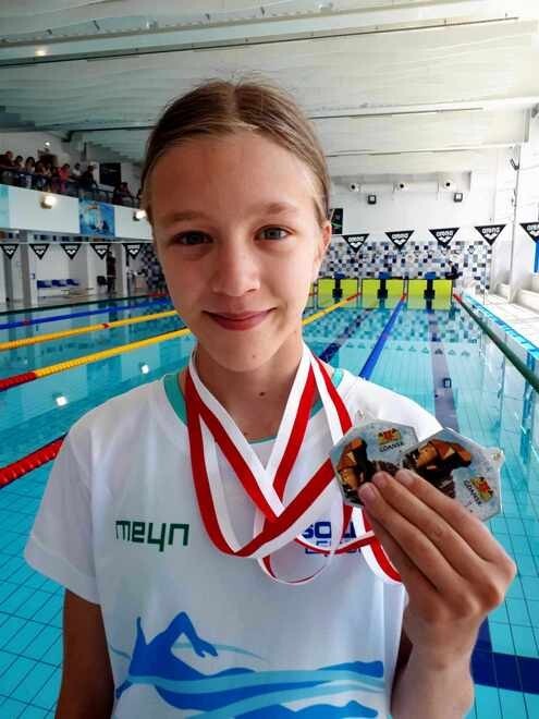 Na pływalni Morena w Gdańsku odbyły się zawody pływackie dzieci i młodzieży we wszechstronności szybkościowej. W zawodach wystartowało 140 zawodników z Chojnic, Gdańska, Sopotu, Stargardu Gdańskiego, Tczewa, Rumi i Lęborka. Wysokie umiejętności zaprezentowała 12-letnia pływaczka SOLEX-U Lębork Tola Sierant. Podopieczna trenera Mirosława Abrahama zdobyła 2 srebrne medale. Zajęła II miejsca na dystansach 50m stylem dowolnym 0.32.59 i 50m stylem grzbietowym 0.37.23. Tola sprawiła sobie wspaniały prezent z okazji Dnia Dziecka, poprawiając swoje rekordy życiowe. Gratulujemy!