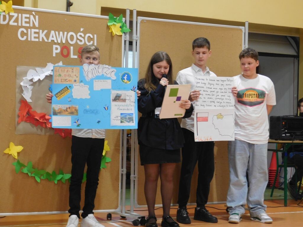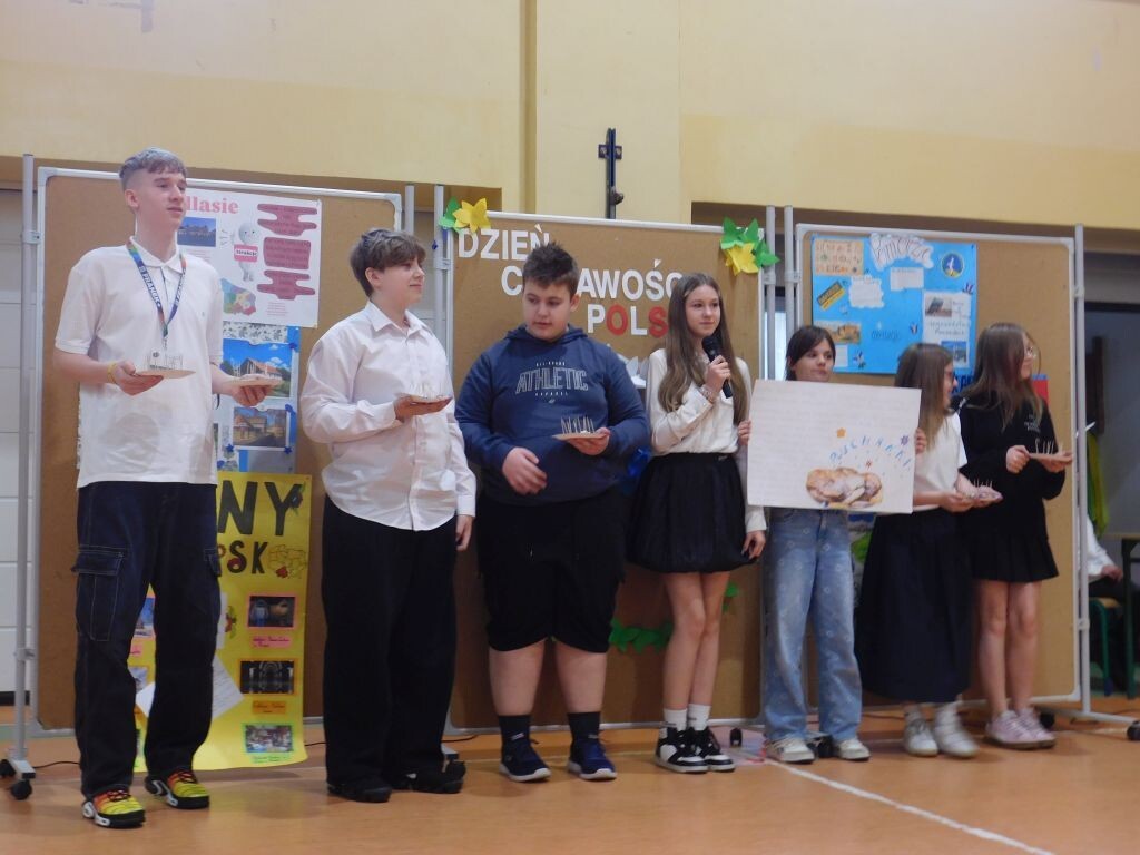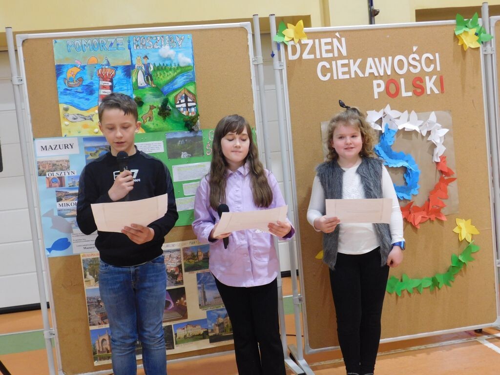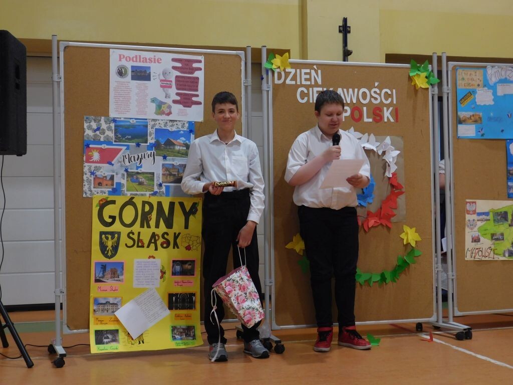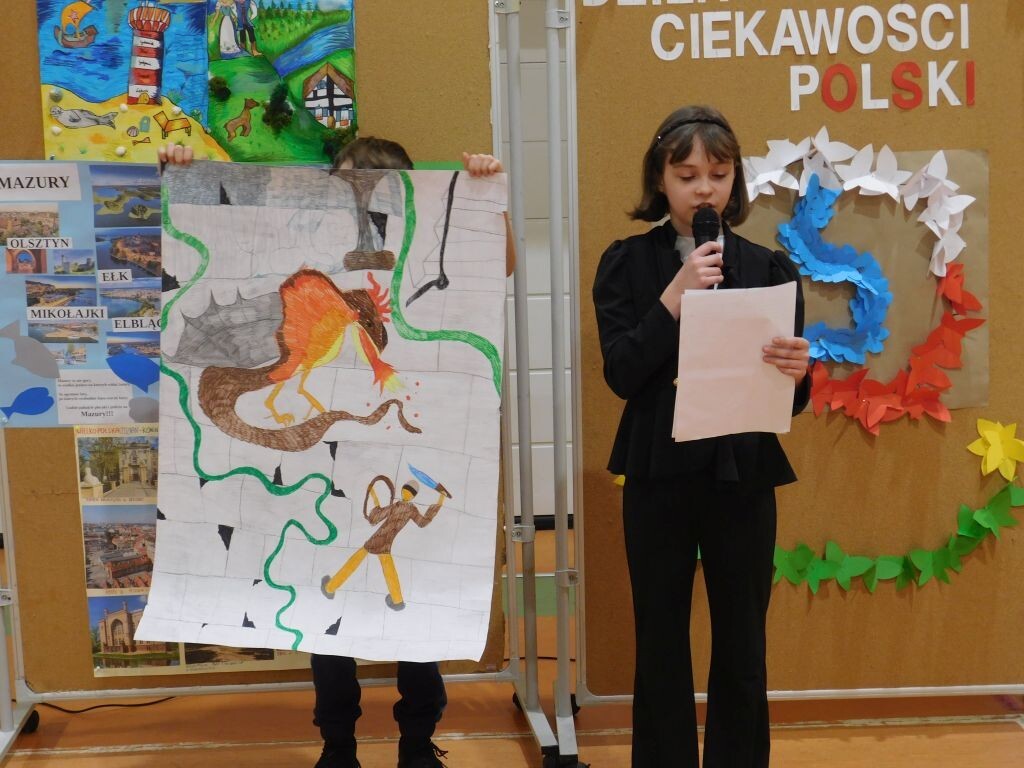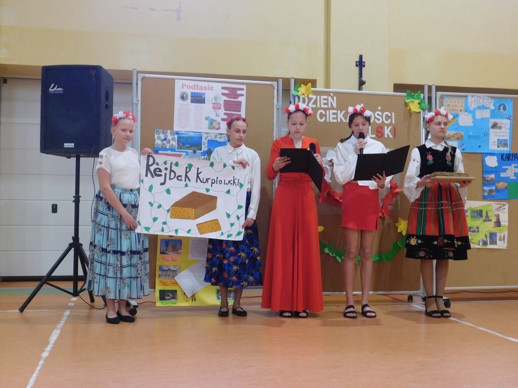 16 kwietnia br. odbyło się w naszej szkole wydarzenie edukacyjne pod hasłem: Dzień Ciekawości Polski. Uczniowie klas IV – VII odbyli podróż po naszym kraju, odkryli i poznali atrakcje, kulturę i tradycje wylosowanych wcześniej regionów Polski. Zadaniem szósto i siódmoklasistów było przygotowanie dla wylosowanego regionu plakatu będącego reklamą turystyczną, wiersza o wylosowanym regionie, zaprezentowanie charakterystycznej potrawy oraz polskiego tańca. Przedstawiciele klas uczestniczyli też w quizie o Polsce oraz w konkurencji sportowej. Klasy czwarte i piąte przygotowały dla wylosowanego regionu plakat będący reklamą turystyczną, wiersz o regionie, wybraną legendę oraz polski taniec (oberek, trojak, polonez, kujawiak, mazur, krakowiak, taniec góralski), uczestniczyli też w konkurencji sportowej.