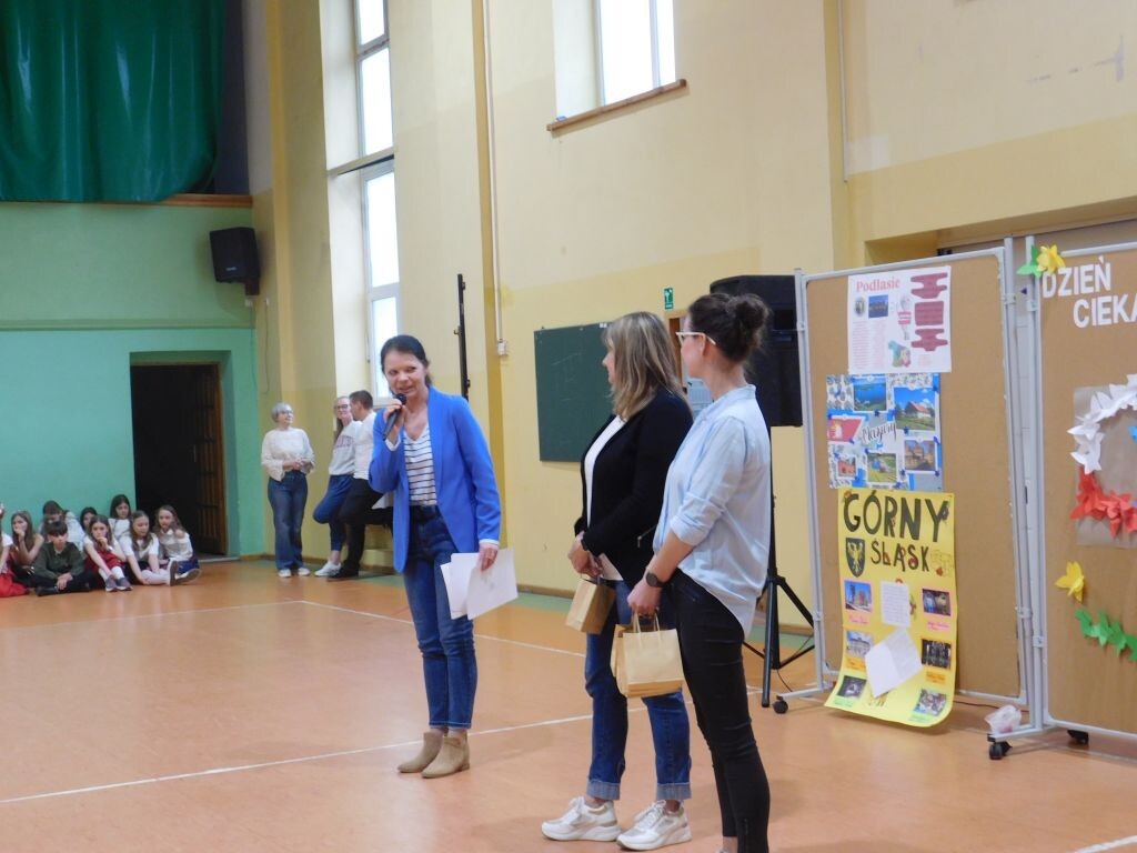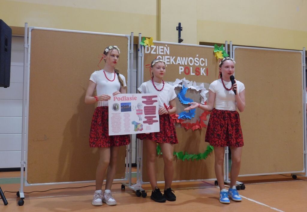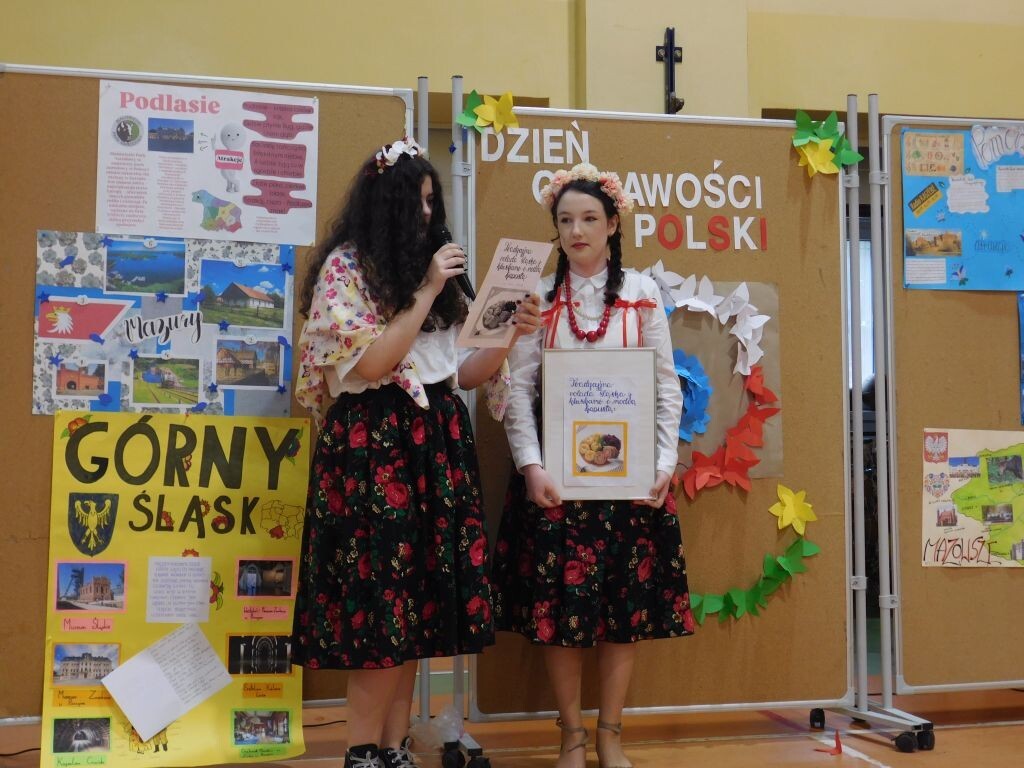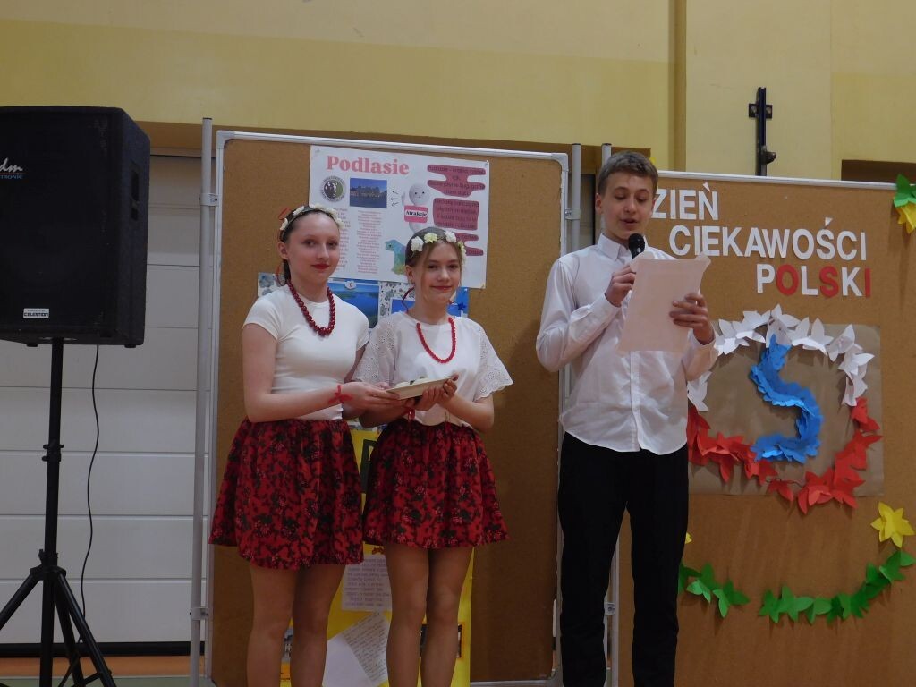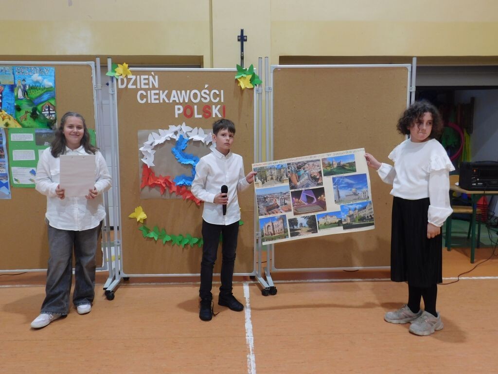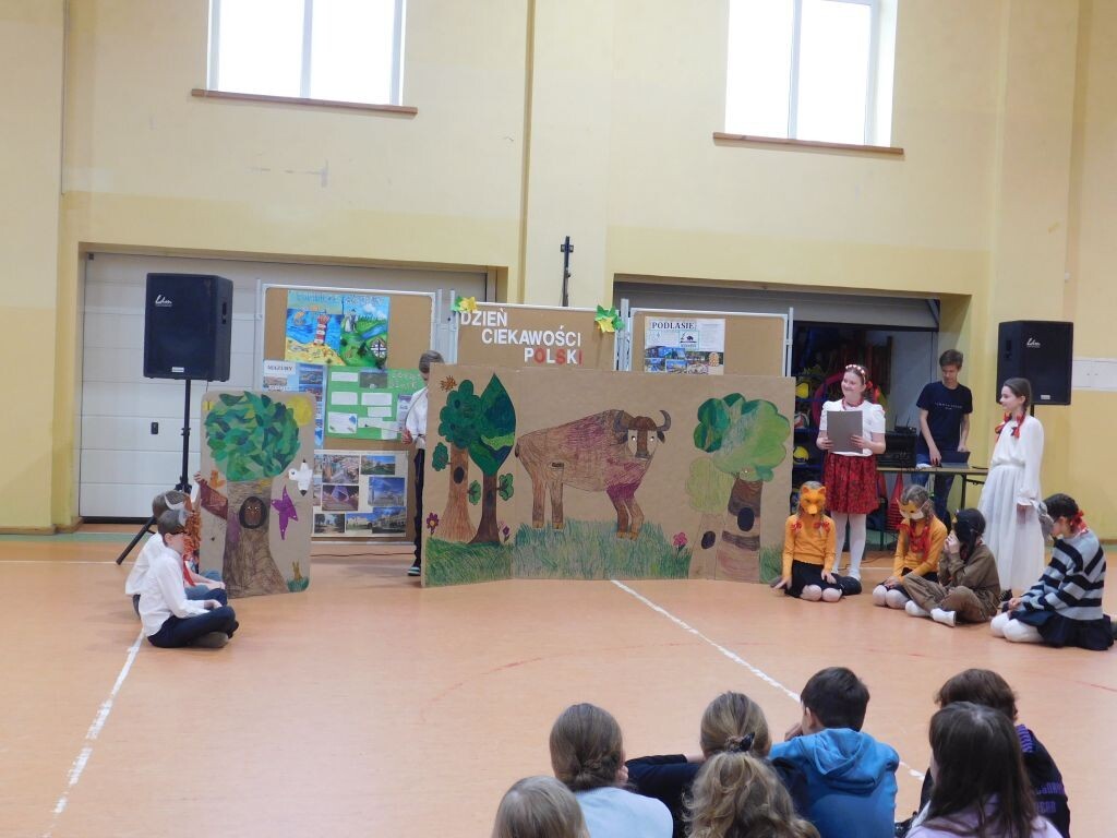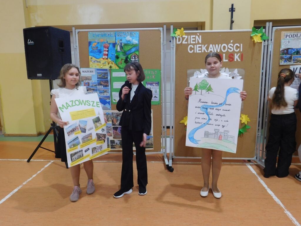 16 kwietnia br. odbyło się w naszej szkole wydarzenie edukacyjne pod hasłem: Dzień Ciekawości Polski. Uczniowie klas IV – VII odbyli podróż po naszym kraju, odkryli i poznali atrakcje, kulturę i tradycje wylosowanych wcześniej regionów Polski. Zadaniem szósto i siódmoklasistów było przygotowanie dla wylosowanego regionu plakatu będącego reklamą turystyczną, wiersza o wylosowanym regionie, zaprezentowanie charakterystycznej potrawy oraz polskiego tańca. Przedstawiciele klas uczestniczyli też w quizie o Polsce oraz w konkurencji sportowej. Klasy czwarte i piąte przygotowały dla wylosowanego regionu plakat będący reklamą turystyczną, wiersz o regionie, wybraną legendę oraz polski taniec (oberek, trojak, polonez, kujawiak, mazur, krakowiak, taniec góralski), uczestniczyli też w konkurencji sportowej.
