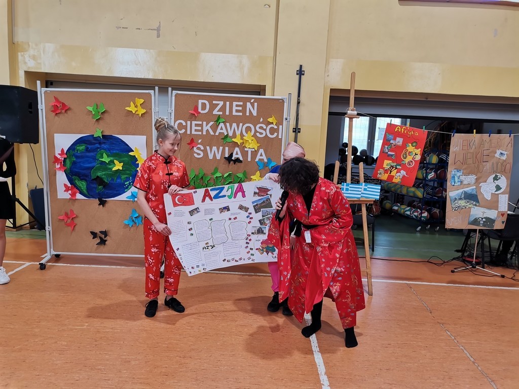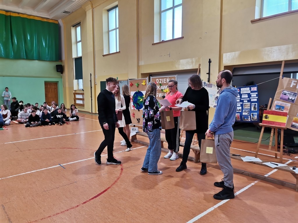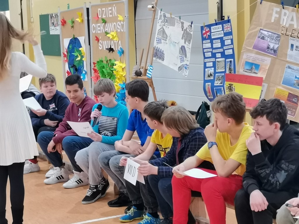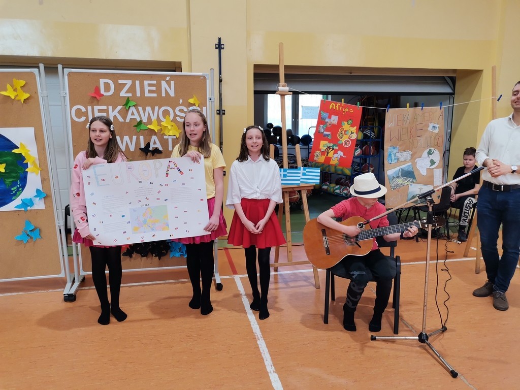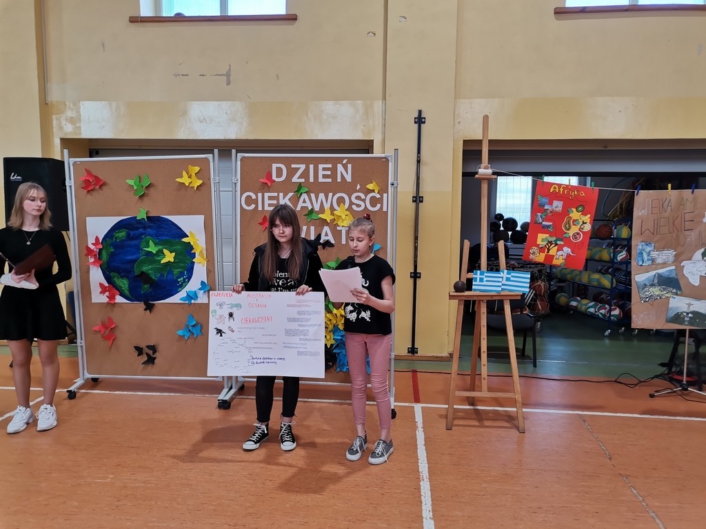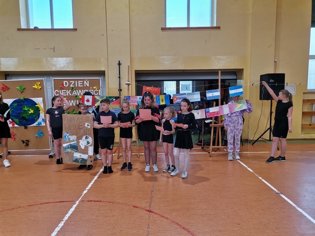 Słowami amerykańskiego pisarza rozpoczęło się w minioną środę wydarzenie edukacyjne pod hasłem: „Dzień ciekawości świata”. Kilka tygodni wcześniej zespoły klasowe uczestniczyły w losowaniu kraju lub kontynentu. Ich zadaniem było wykonanie do niego plakatu, hasła reklamującego oraz zaprezentowanie tańca narodowego lub regionalnego. Dodatkowo klasy 7 i 8 uczestniczyły również w quizie wiedzowym, zaś przedstawiciele wszystkich klas mogli zdobyć punkty w konkurencji sportowej. Uczniowie wykazali się sporą wiedzą, dużą pomysłowością a także umiejętnościami tanecznymi. Klasyfikacja jury przedstawia się następująco: