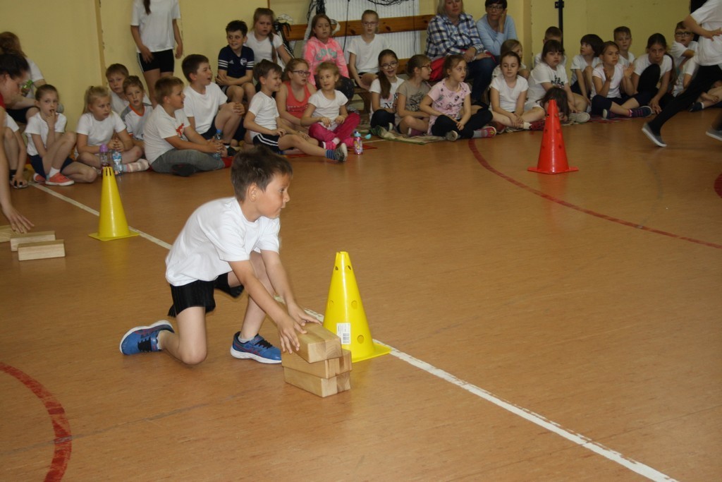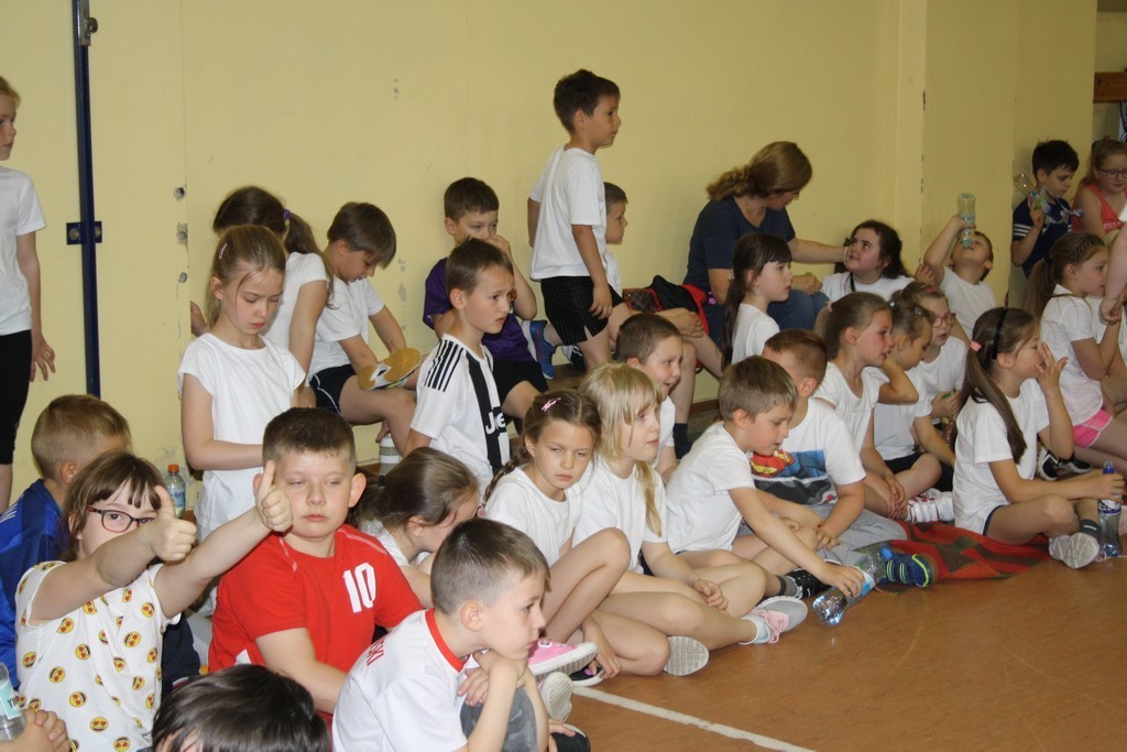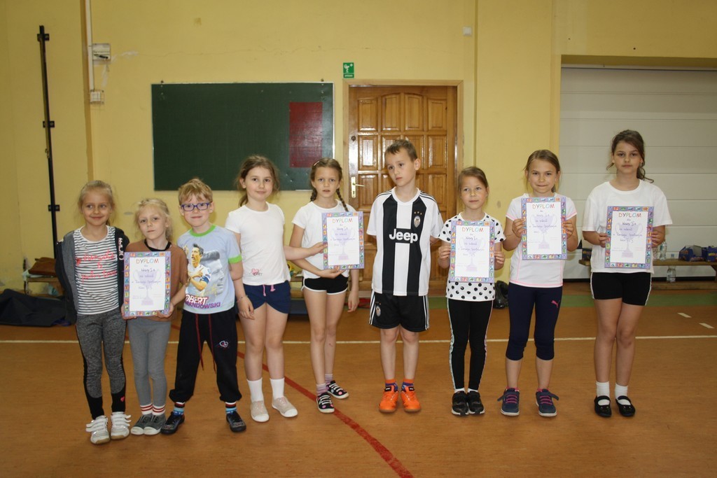 Po koncercie rozpoczął się turniej sportowy. Uczniowie z ogromnym zapałem uczestniczyli w przygotowanych dla nich konkurencjach. Humory dopisywały, nasi milusińscy świetnie się bawili. Na zakończenie turnieju gospodarze klas odebrali dyplomy.