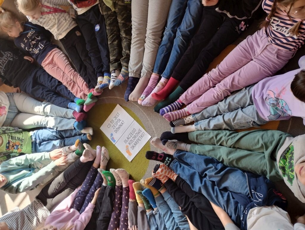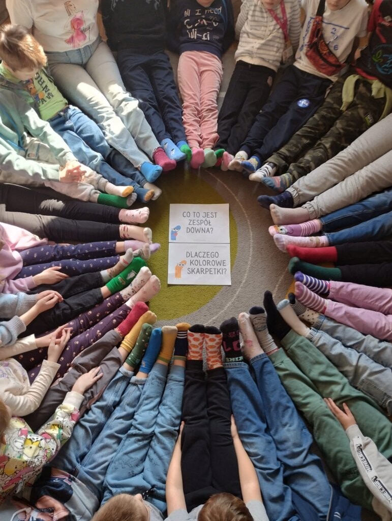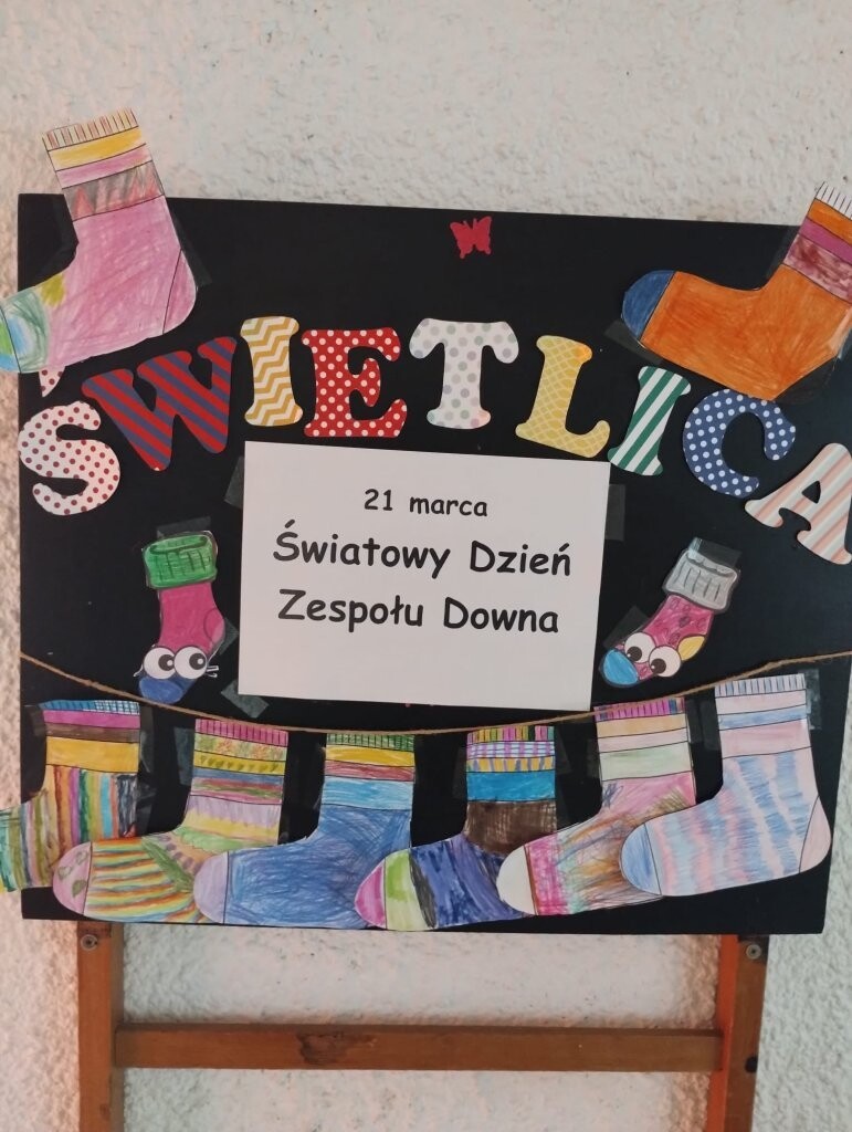 Światowy Dzień Zespołu Downa, zwany również Dniem Kolorowej Skarpetki to święto ustanowione z inicjatywy Europejskiego Stowarzyszenia Zespołu Downa w 2005 roku. Data 21 marca nie jest przypadkowa, ponieważ nawiązuje do nadejścia wiosny oraz genetycznego podłoża Zespołu Downa – trisomii 21 chromosomu. Skarpetki zakładane nie do pary są symbolem osób dotkniętych tym schorzeniem i mają za zadanie pokazać, że akceptujemy ich inność. W szkolnej świetlicy uczniowie przygotowali prace plastyczne oraz uczestniczyli w zajęciach związanych z tym tematem.