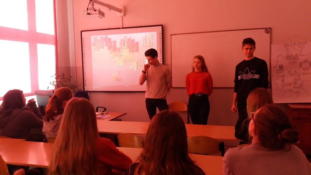W ubiegły czwartek, 05.03. grupa uczniów z klas ósmych gościła w progach Liceum Ogólnokształcącego nr 2 w Lęborku podczas dnia otwartego tej placówki. Uczniowie Dwójki przygotowali szereg atrakcji, by jak najlepiej zaprezentować zadania i specyfikę szkoły. Na początku pan dyrektor przedstawił ofertę edukacyjną liceum na przyszły rok szkolny. Następnie odbyły się występy solistów, pokazy tańca, warsztaty teatralne, quizy językowe, a nawet świetnie przygotowana i przeprowadzona debata oksfordzka na temat współczesnej popkultury. A oto kilka zdjęć z wizyty naszych uczniów :