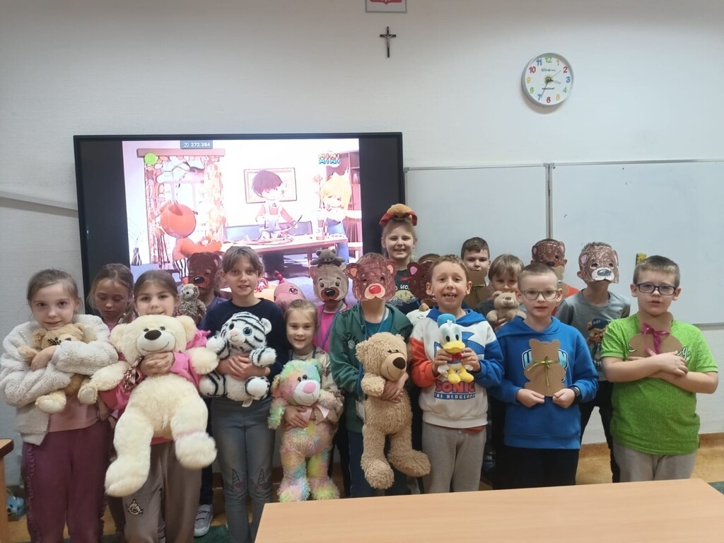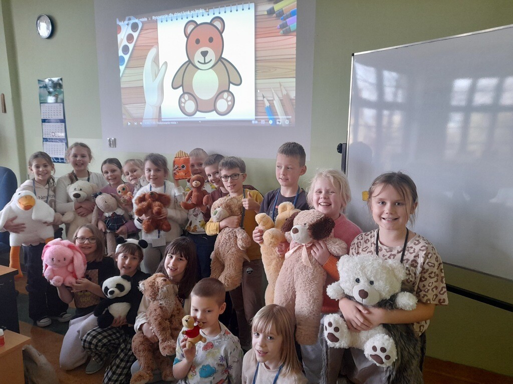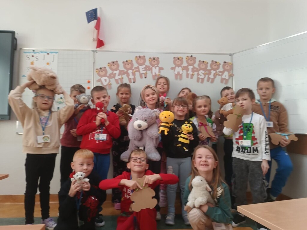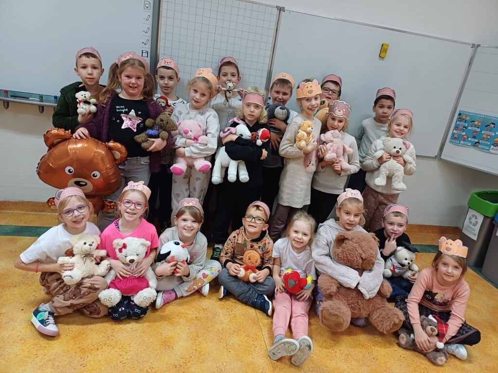 W poniedziałek 25 listopada w naszej szkole 122 urodziny świętował przyjaciel wszystkich dzieci – pluszowy miś. To właśnie tego dnia na całym świecie obchodzony jest Dzień Pluszowego Misia. Uczniowie klas 1-3 przyszli do szkoły ze swoimi ulubionymi pluszakami, które nie raz dzieliły z nimi troski i radości, pomagały zasnąć, dawały poczucie bezpieczeństwa. Podczas zajęć lekcyjnych dzieci poznały historię pluszowego misia, wykonywały zadania związane z tym nietypowym świętem, śpiewały piosenki i bawiły się przy misiowej muzyce. Ten dzień pełen był uśmiechu oraz wspólnej zabawy.