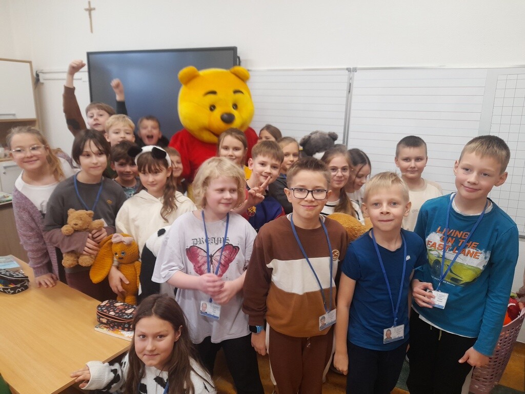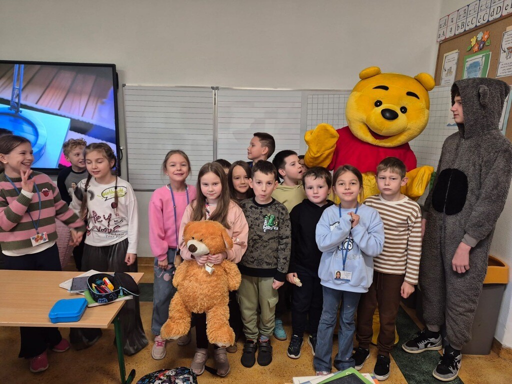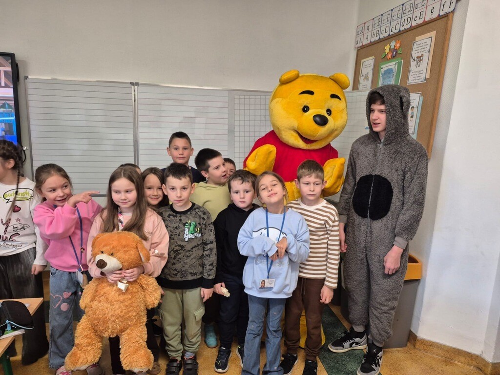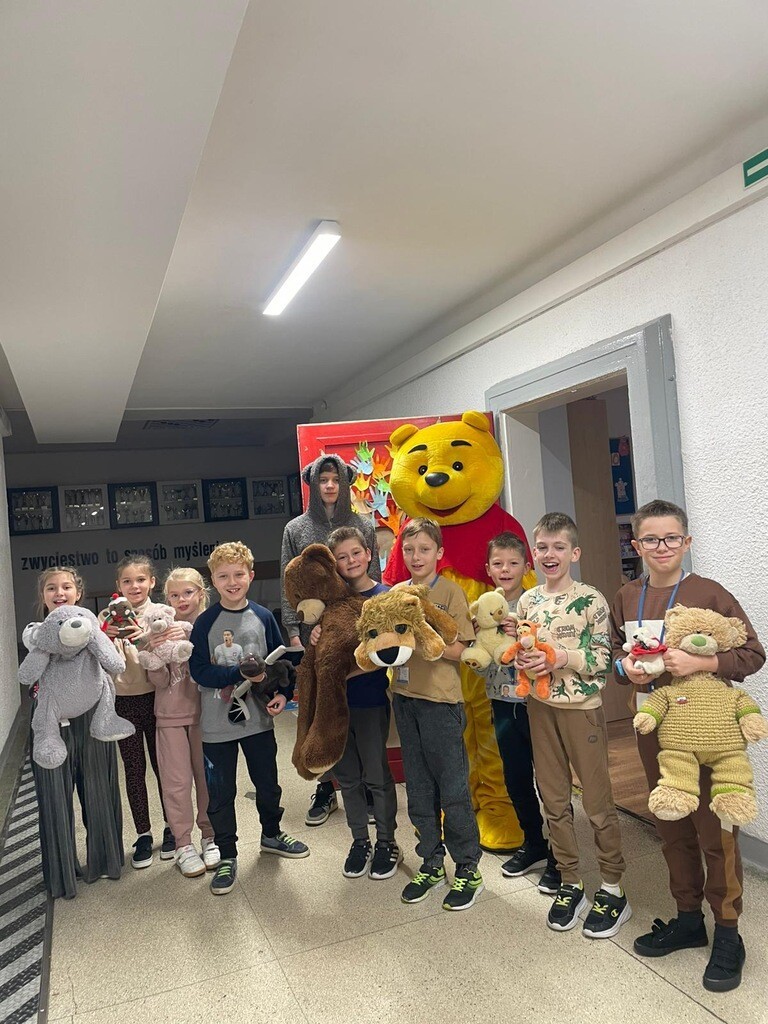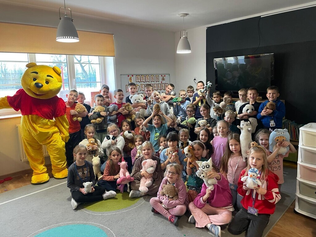 Za sprawą wyjątkowej akcji świetlicowej, której celem było tchnąć nowe życie w zalegające w domach pluszaki, uczniowie przynieśli swoje już nieużywane, zapomniane misie i inne maskotki, aby mogły znaleźć nowych właścicieli i sprawić radość kolejnym dzieciom. Największą atrakcją wydarzenia był Kubuś Puchatek, który tanecznym krokiem przemierzał szkolne korytarze, niosąc kosz pełen tychże maskotek. Pluszaki trafiły w małe rączki naszych uczniów, otrzymując tym samym nowy dom i nowe przeznaczenie. Spotkaniom z Kubusiem towarzyszyły uśmiechy, wzruszenia i ciepła, życzliwa atmosfera.