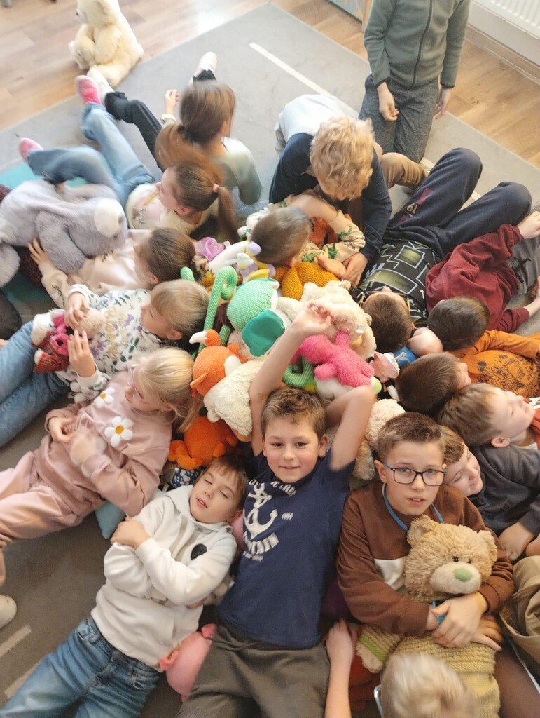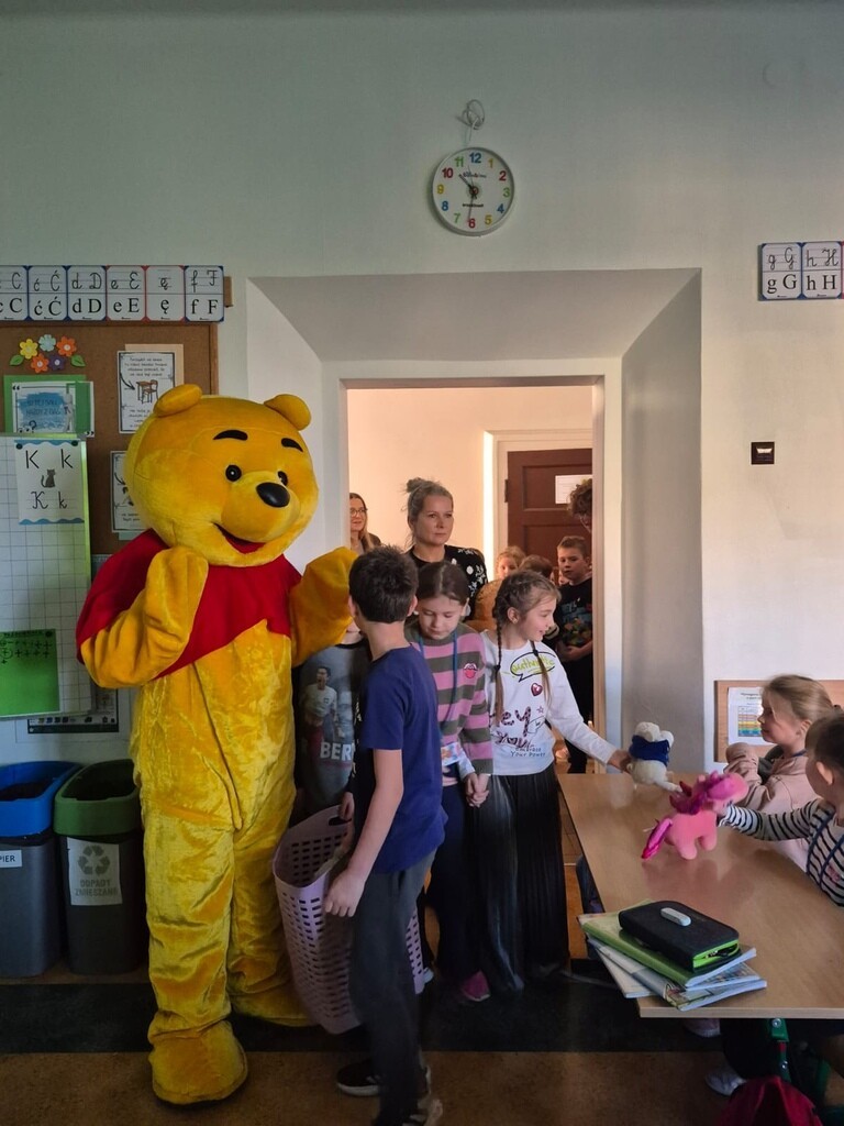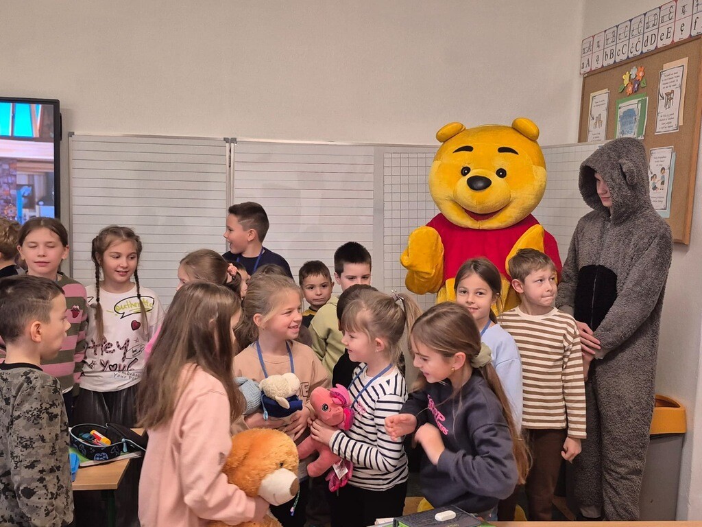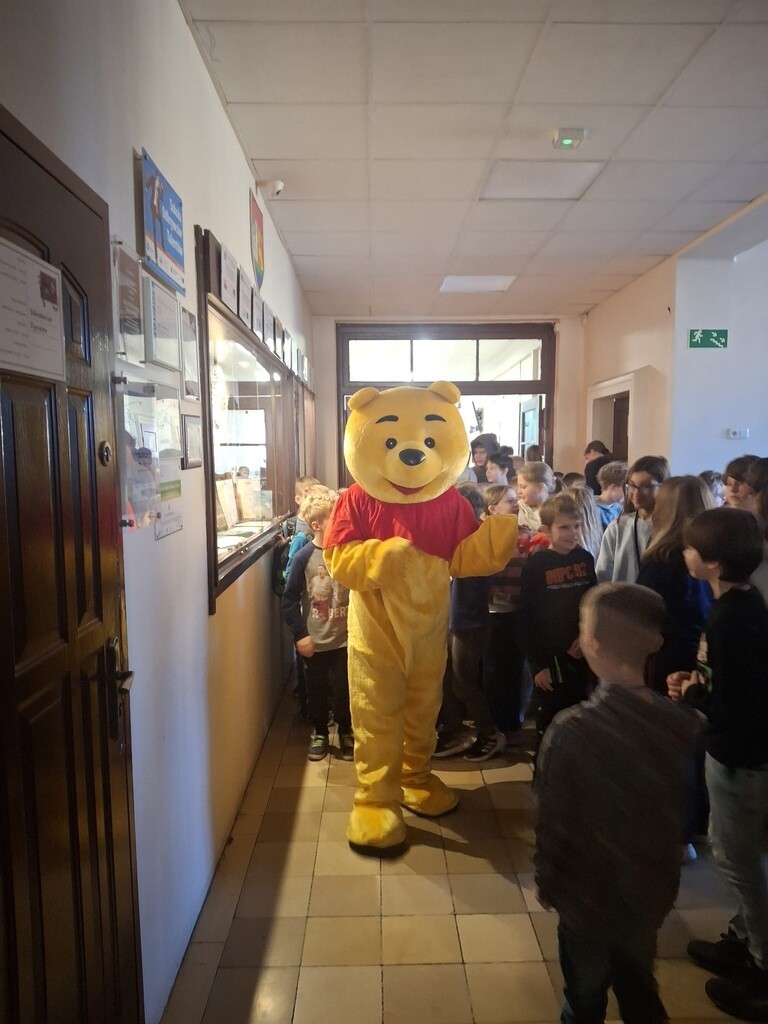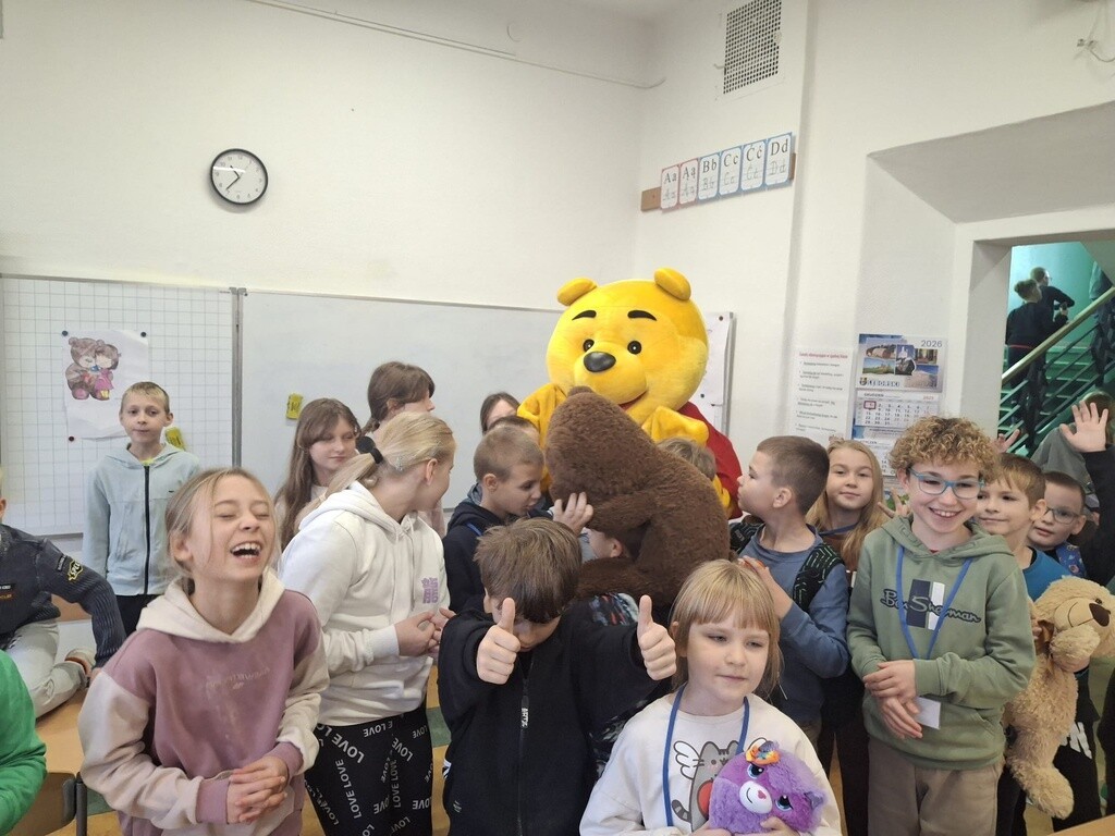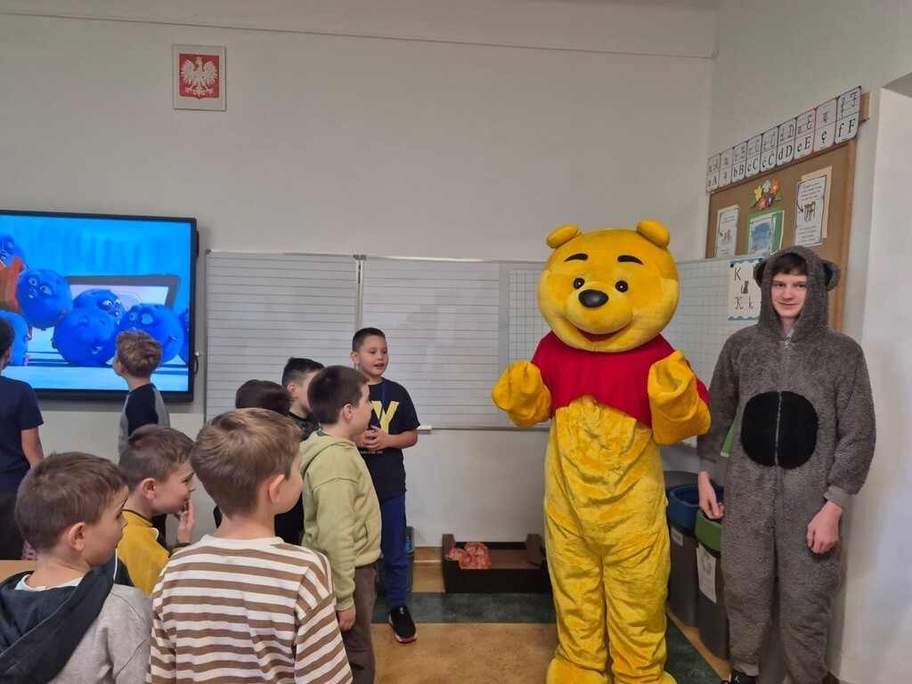 Za sprawą wyjątkowej akcji świetlicowej, której celem było tchnąć nowe życie w zalegające w domach pluszaki, uczniowie przynieśli swoje już nieużywane, zapomniane misie i inne maskotki, aby mogły znaleźć nowych właścicieli i sprawić radość kolejnym dzieciom. Największą atrakcją wydarzenia był Kubuś Puchatek, który tanecznym krokiem przemierzał szkolne korytarze, niosąc kosz pełen tychże maskotek. Pluszaki trafiły w małe rączki naszych uczniów, otrzymując tym samym nowy dom i nowe przeznaczenie. Spotkaniom z Kubusiem towarzyszyły uśmiechy, wzruszenia i ciepła, życzliwa atmosfera.