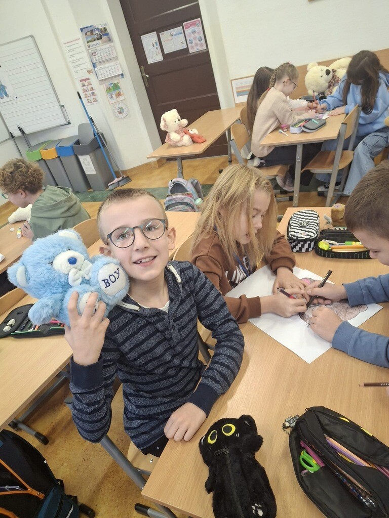 25 listopada w naszej szkole obchodziliśmy Dzień Pluszowego Misia. Uczniowie klas I - III przynieśli do szkoły swoje ulubione pluszowe maskotki, które towarzyszyły im przez cały dzień. Dzieci wysłuchały krótkiej historii o powstaniu pluszowego misia, brały udział w zabawach ruchowych oraz zagadkach związanych z misiami, a także wspólnie śpiewały piosenki i wykonywały prace plastyczne.