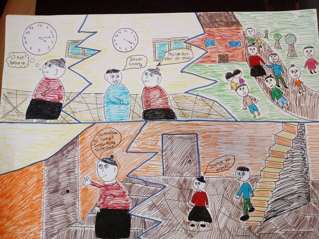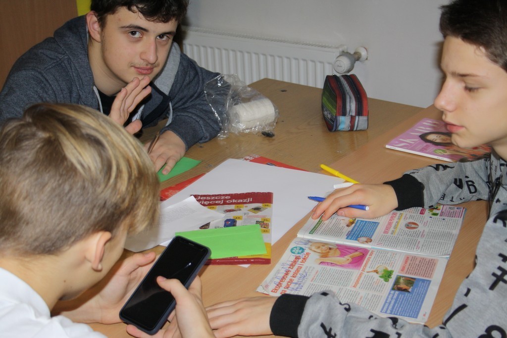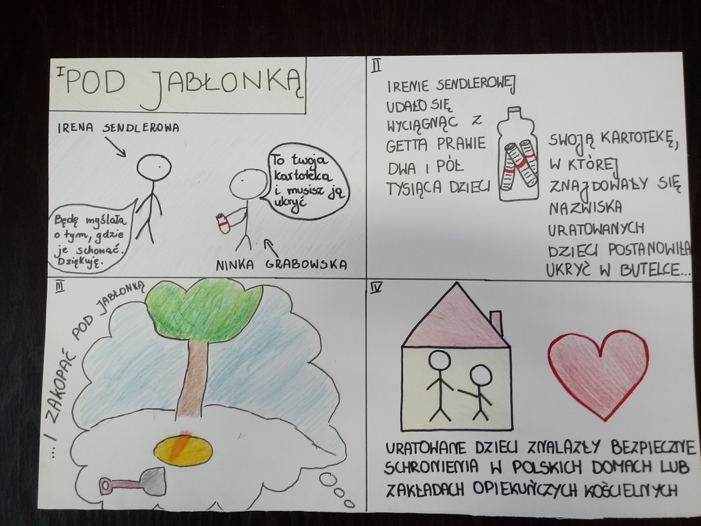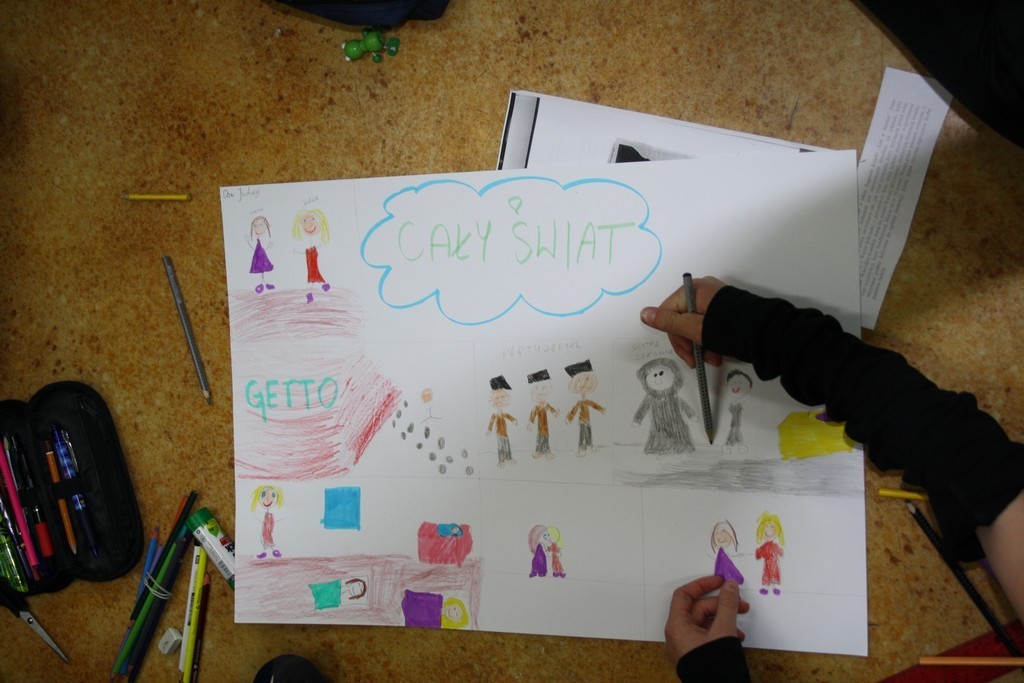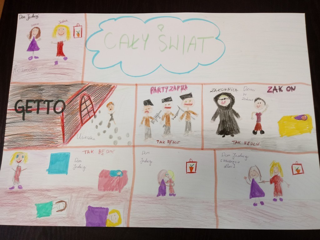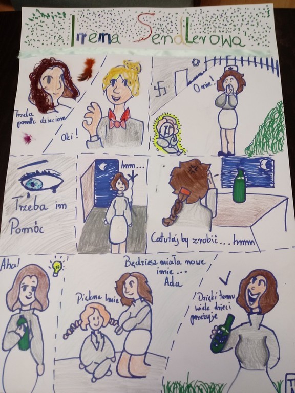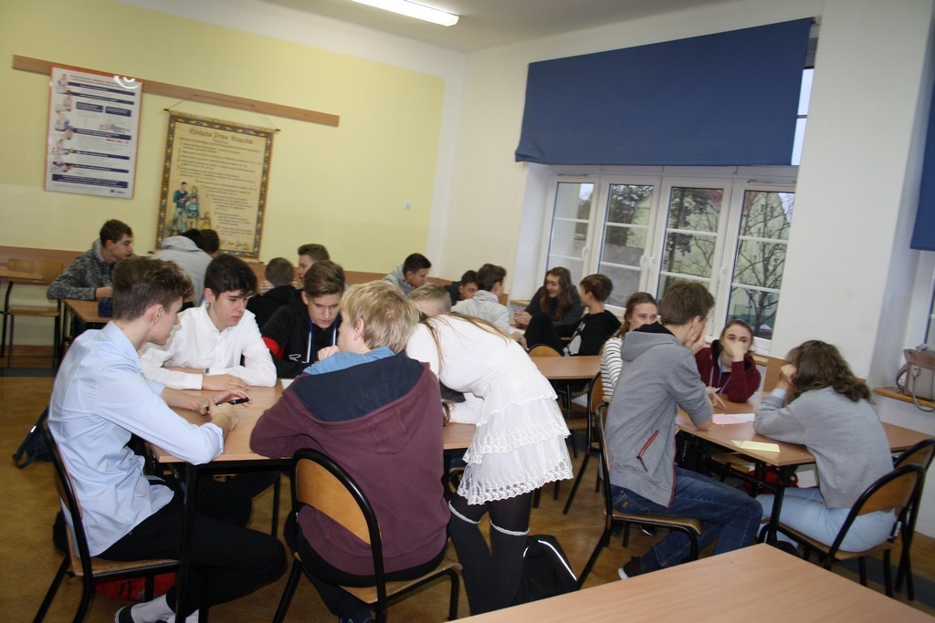 Podczas godzin wychowawczych, przeprowadzili warsztaty. Poprosili o wykonanie 6 zadań grupowych. Pierwsze polegało na zapoznaniu się z Powszechną Deklaracją Praw Człowieka, a następnie zilustrowanie jej. Kolejna grupa tworzyła rysunek pod hasłem „Ochrona Praw Człowieka”, po zapoznaniu się z informacjami na ten temat. Następna grupa zapoznawała się z biografią Ireny Sendlerowej oraz otrzymywała fragment książki „Listy w butelce” autorstwa Anny Czerwińskiej-Rydel. Zadaniem uczniów i uczennic było wykonać komiks na bazie otrzymanego tekstu. Kolejne grupy kolejno pisały list w ramach Maratonu Pisania Listów, tworzyły kolaż pod hasłem towarzyszącym obchodom powstania Deklaracji, kreowały obraz naszej idealnej szkoły. Podczas przerw zaprosiliśmy także do udziału w konkursie wiedzowym na temat Deklaracji Praw Człowieka. Wszystkie prace zostały ocenione przez uczniów i uczennice z klasy VIIIB.