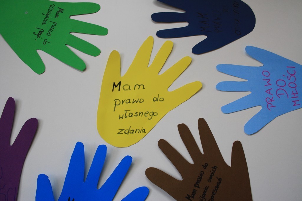 17 listopada na długo pozostanie w naszej pamięci, ponieważ tego dnia świętowaliśmy w naszej szkole Ogólnopolski Dzień Praw Dziecka. Prawa dziecka określa Konwencja Praw Dziecka i właśnie na jej podstawie wszyscy uczniowie naszej szkoły przygotowali kolorowy kontur dłoni, na którym napisali najważniejsze dla nich prawa. 420 „dłoni” z prawami dziecka zdobiło tego dnia naszą szkołę.