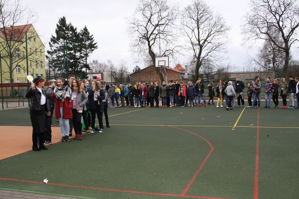 Ogłoszono również konkurs na zliczenie z „kolorowych dłoni” najbardziej popularnego prawa wśród uczniów. Dokonała tego jako pierwsza Nikola Sulkowska z III S i zdobyła tym samym 10 punktów dla swojej klasy! A jakie to prawo? Uczniowie Gimnazjum nr 1 mają prawo do własnego zdania.