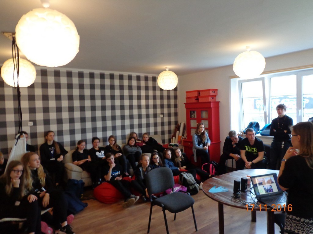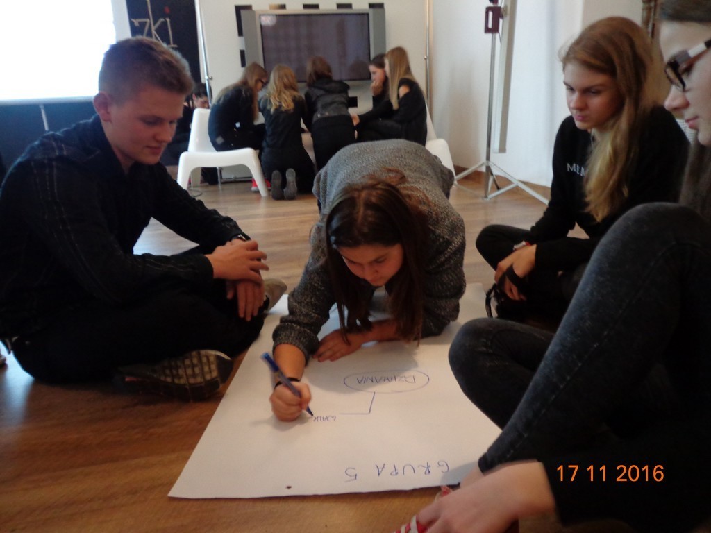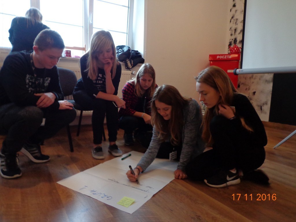 Klasa II B i grupa projektowa, które odpowiadały za organizację tego dnia w szkole, uczestniczyły w zajęciach warsztatowych prowadzonych przez przedstawiciela Fundacji Solidarity Film Doc. Warsztaty dotyczyły łamania praw kobiet.