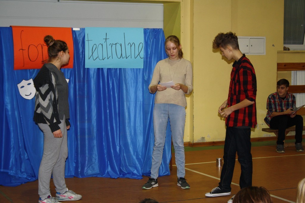 Dzień Praw Dziecka rozpoczęły Małe Formy Teatralne (3x5) w wykonaniu uczniów klas I. Każda klasa zgodnie z założeniami przygotowała przedstawienie dot. łamania praw dziecka. Jury było pod tak wielkim wrażeniem poruszanych tematów i zdolności aktorskich pierwszoklasistów, ze postanowiło przyznać wszystkim klasom I miejsce.