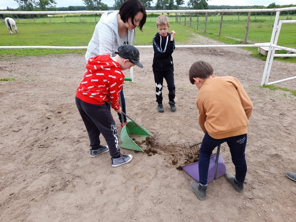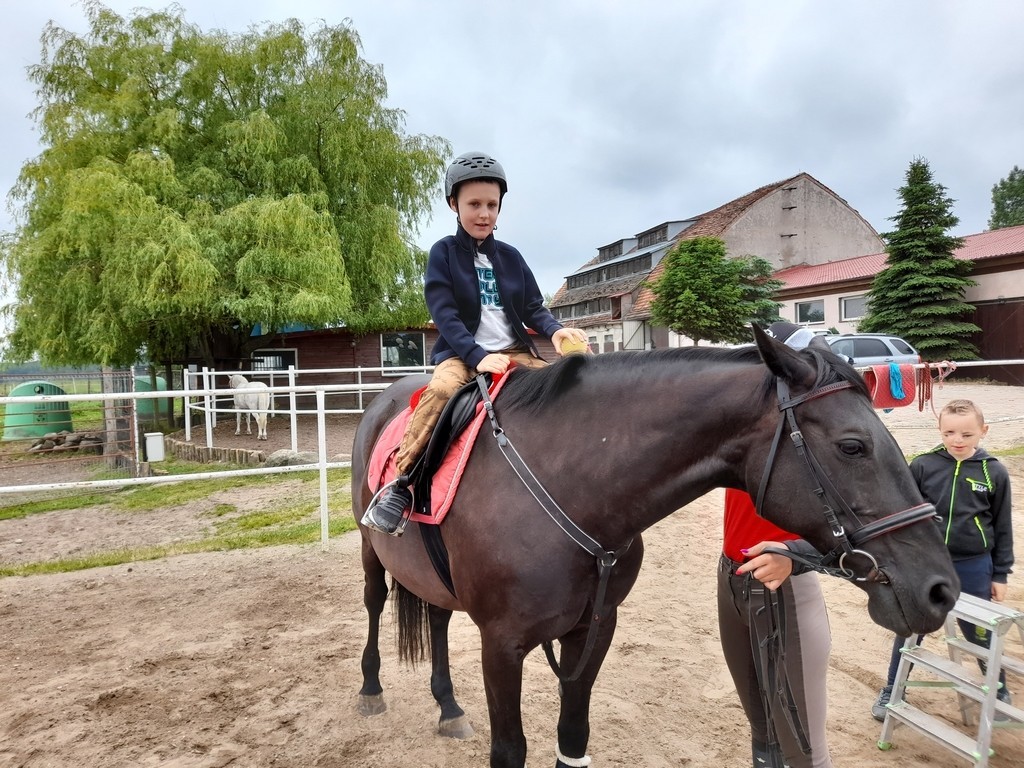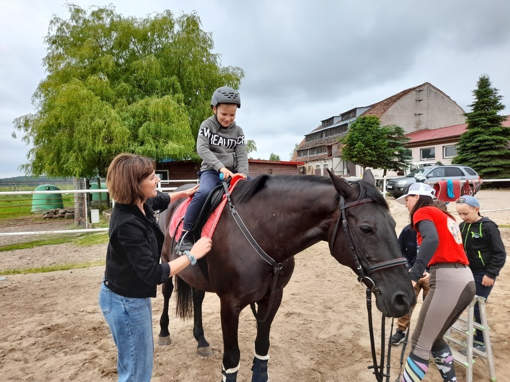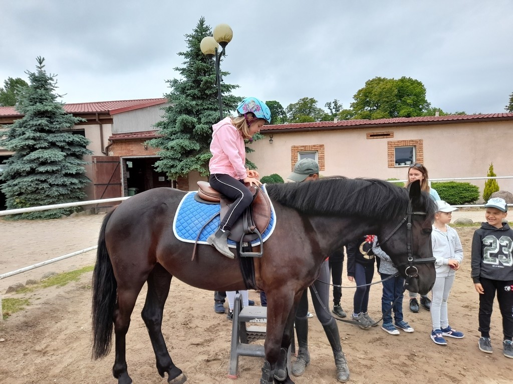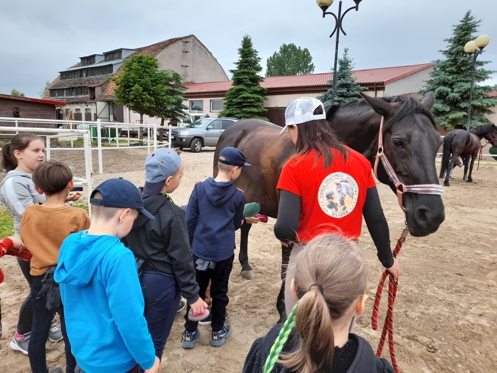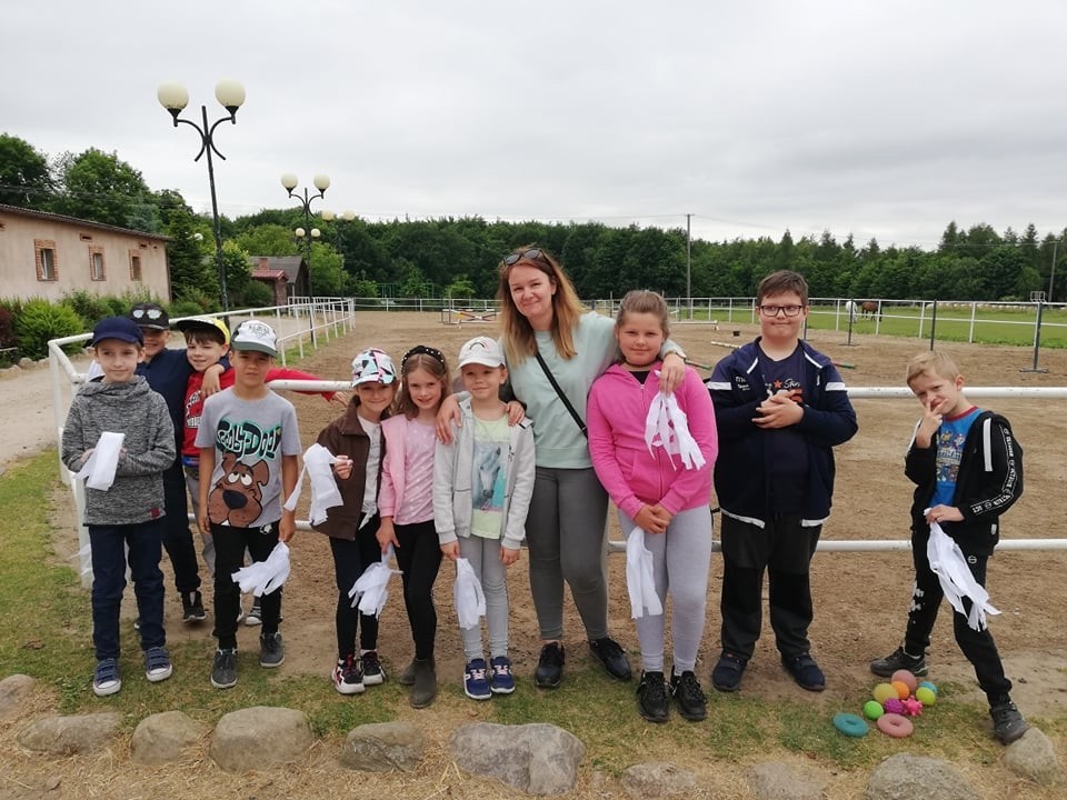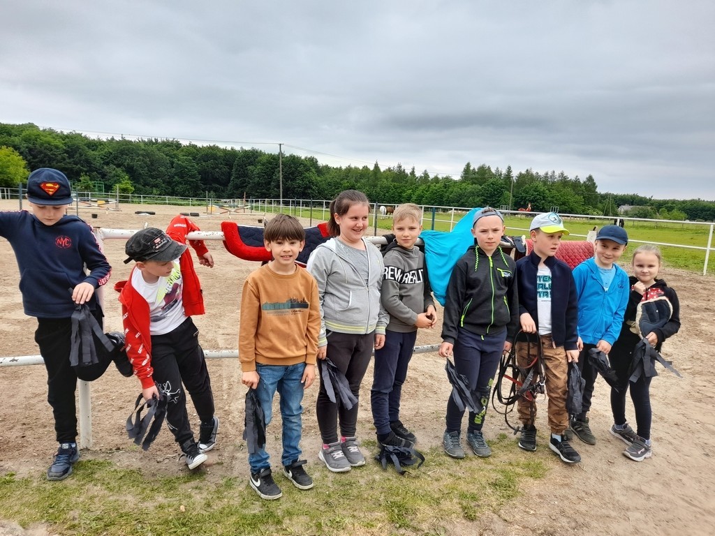 Powyższe zadania dzieci wykonały z wielkim entuzjazmem i zaangażowaniem. Pomimo obaw wszyscy uczniowie zasiedli w siodle i spróbowali jazdy konnej. Miłym akcentem było również ognisko z kiełbaskami oraz smakołyki przygotowane przez rodziców. To był udany, pełen radości, uśmiechu i przyjemności dzień.