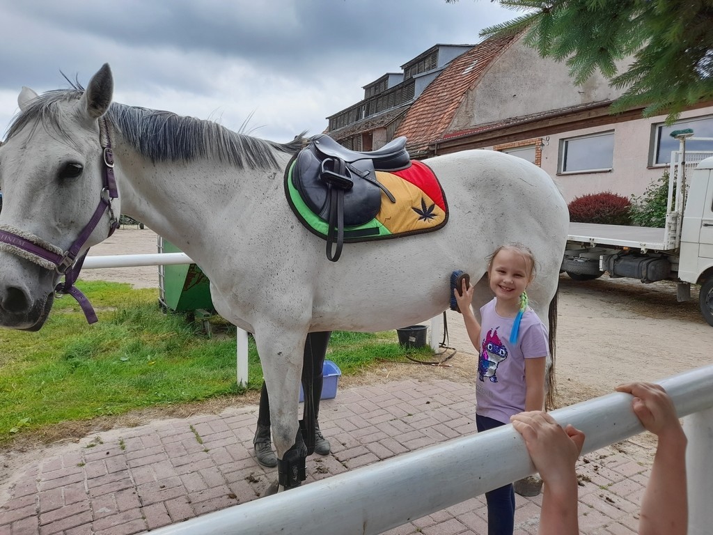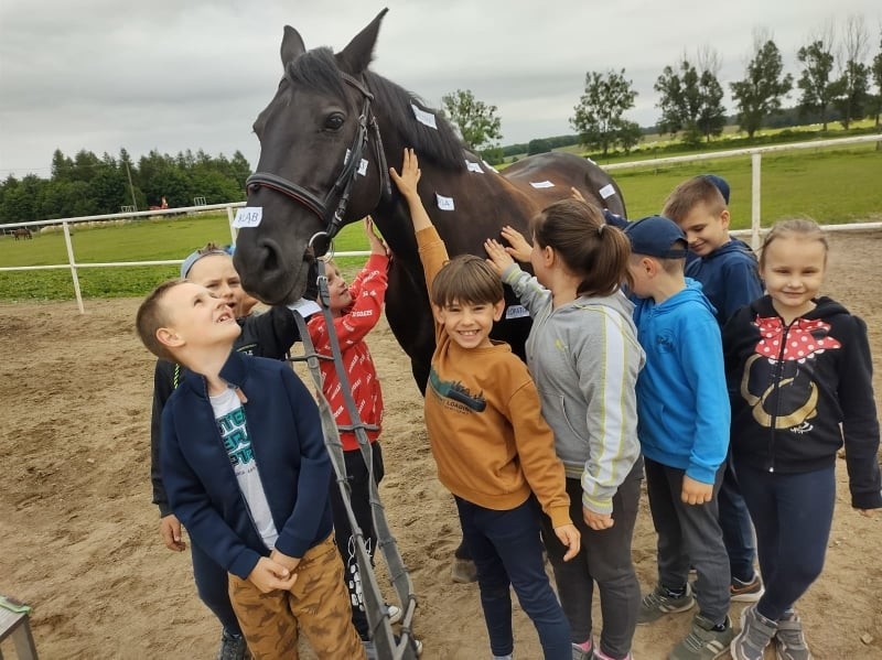 Dzień upłynął pierwszakom aktywnie, ciekawie i bardzo wesoło. Przy okazji wspaniałej zabawy dzieci dużo nauczyły się na temat koni, ich zachowania i bezpieczeństwa podczas przebywania w ich pobliżu. W programie warsztatów znalazły się następujące wyzwania: