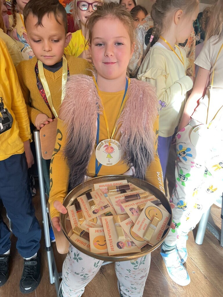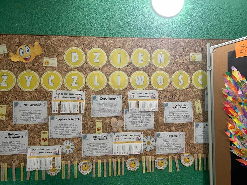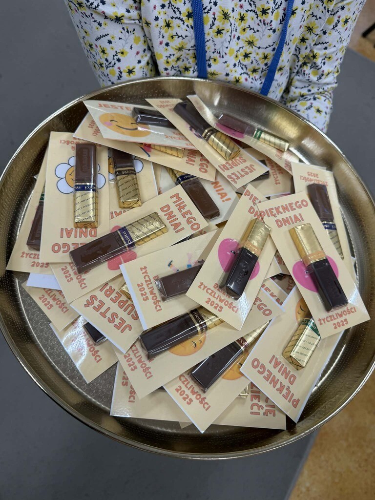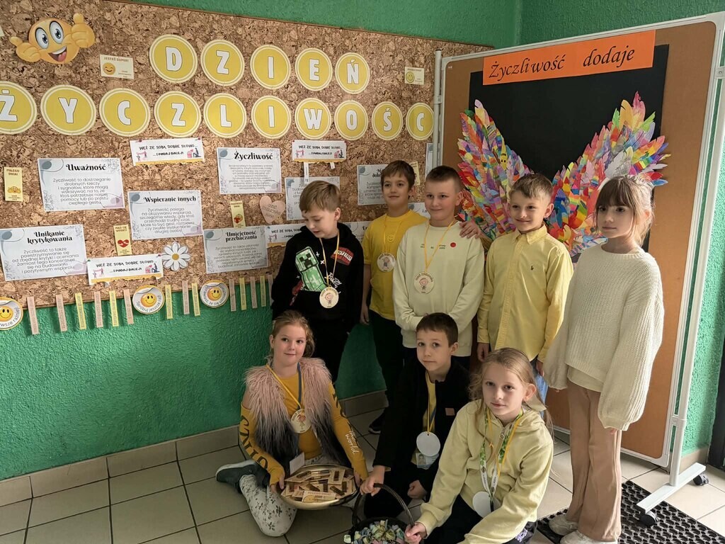 21 listopada w naszej szkole obchodziliśmy Dzień Życzliwości, który upłynął w wyjątkowo radosnej i ciepłej atmosferze. Uczniowie przez cały dzień starali się obdarowywać wzajemnie dobrym słowem, uśmiechem i pomocną dłonią. Dzieci przygotowały słodkie niespodzianki, rozdając cukierki oraz drobne upominki uczniom oraz pracownikom szkoły. Towarzyszyły temu życzenia miłego dnia oraz wiele serdeczności. Każda klasa miała też zadanie do wykonania, związane z promowaniem pozytywnych zachowań i budowaniem życzliwej postawy wobec innych. Wszyscy - uczniowie, nauczyciele i pracownicy szkoły - włączyli się w obchody i zadbali o to, aby ten dzień był pełen uśmiechu i wzajemnego szacunku. Była to piękna okazja, aby przypomnieć sobie, jak niewiele potrzeba, by sprawić komuś radość.