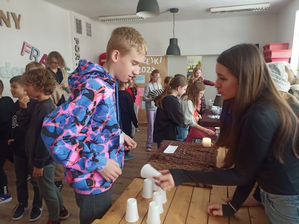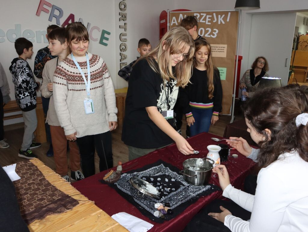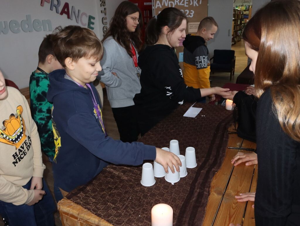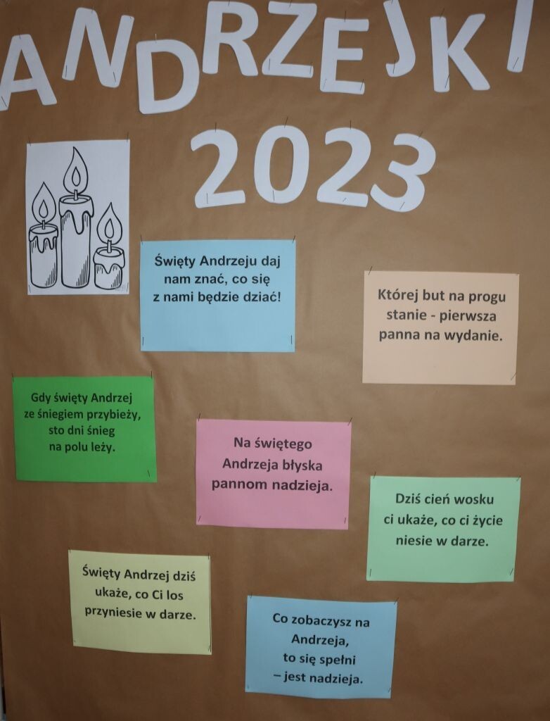 Dla wielu osób pierwszym skojarzeniem z andrzejkami są wróżby i słusznie, ponieważ z 29 na 30 listopada tradycyjnie odbywają się zabawy połączone z wróżeniem. To jedna z najciekawszych polskich tradycji. Dawniej wierzono, że w tym czasie można zajrzeć w przyszłość. Lanie wosku przez dziurkę od klucza, przekłuwanie szpilkami serca z wypisanymi imionami, czytanie z dłoni, to tylko część zabaw, które w miniony czwartek przygotowały dla naszych uczniów dziewczęta działające w Samorządzie Uczniowskim. W sali projektowej można było przy kilku specjalnie zaaranżowanych stolikach poznać przyszłość. I chociaż wiadomo, że wszystkie wróżby należy traktować z przymrużeniem oka, trzeba przyznać, że wszyscy uczestnicy zabawy świetnie się bawili!