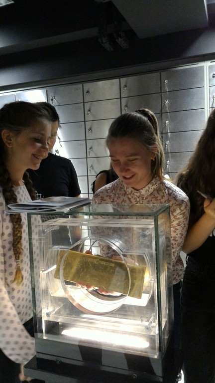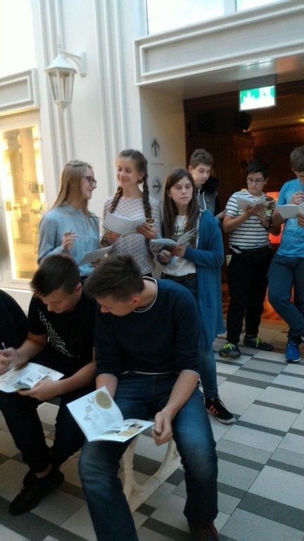 Głównym punktem programu były zajęcia w Centrum Pieniądza Narodowego Banku Polskiego im. Sławomira Skrzypka. Uczniowie, podzieleni na dwie grupy, realizowali wyznaczone im zadania. Odwiedzili również skarbiec, uczyli się rozróżniać podrobione banknoty, dowiedzieli się jakie były początki pieniądza, finansów i bankowości.