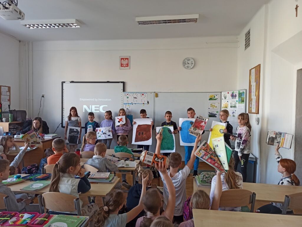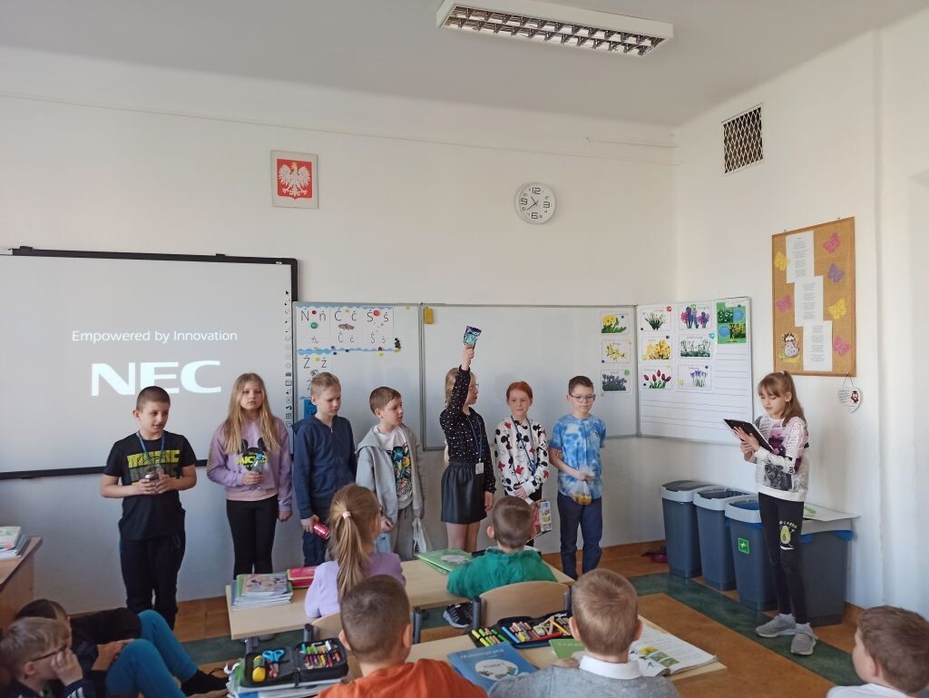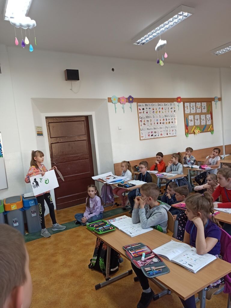 „Dzień Ziemi” to szczególny czas, aby przypominać, jak dbać o nasze najbliższe środowisko i uczyć się ekologicznego stylu życia od najmłodszych lat. Z tej właśnie okazji klasa 3c przygotowała ekologiczne przedstawienie dla swoich młodszych kolegów. Dzieci uczyły się segregacji śmieci, utrwalały pojęcie „recykling”, poznały sposoby oszczędzania wody, energii elektrycznej, dbania o czyste powietrze. Kształtowanie proekologicznych postaw jest niezwykle ważne.