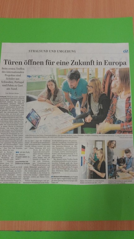 Na spotkaniu w Stralsundzie każde państwo zaprezentowało kilka prac z propozycją na logo naszego projektu Erasmus+ „Opening doors to Europe”. Miło nam poinformować, że trzy pierwsze miejsca zajęły prace uczniów z Polski. Zwyciężyła praca Marty Zanewycz (klasa IIb), drugie miejsce zajęła Klaudia Sławikowska (klasa IIb),trzecie miejsce należało do Zuzanny Szybisty (IIc). Serdecznie gratulujemy!