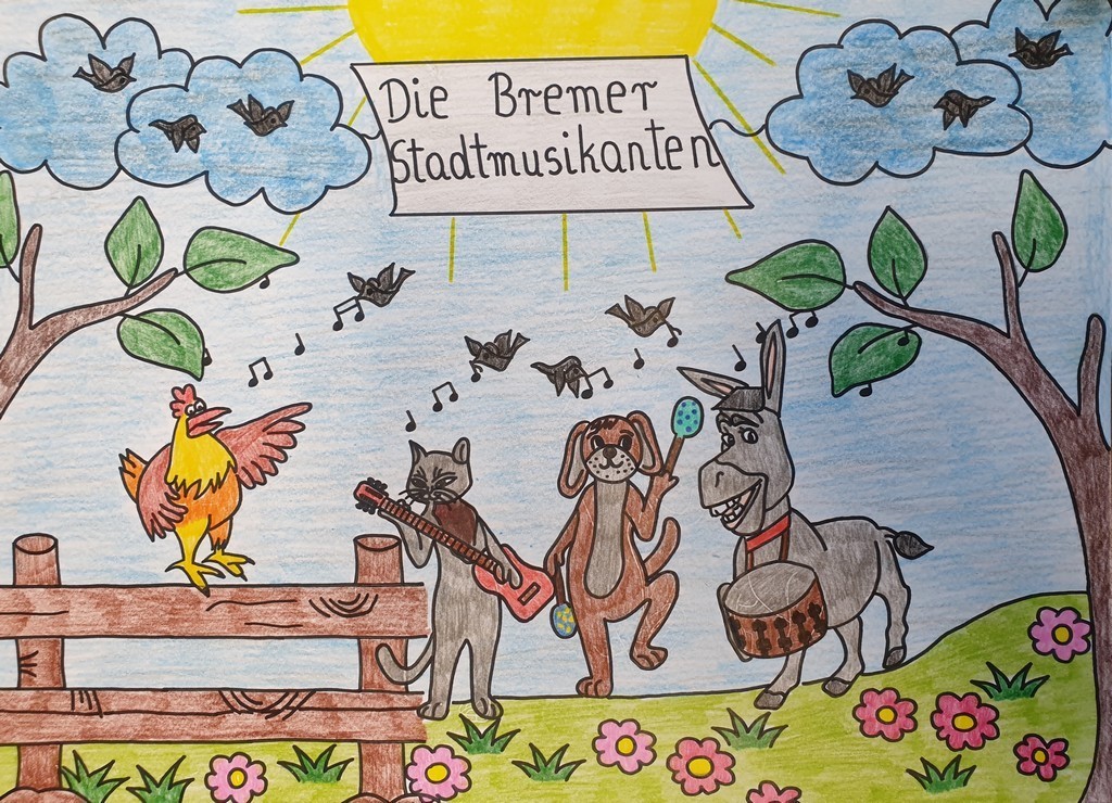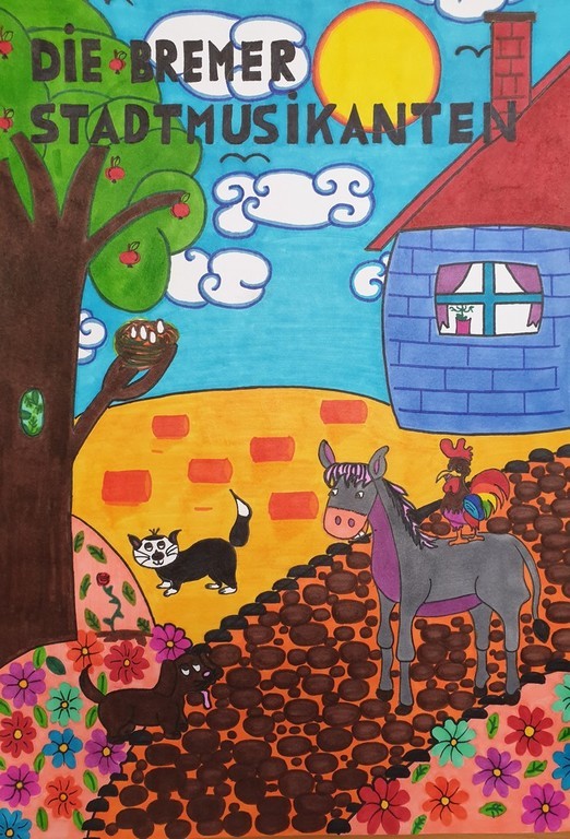 Klasy siódme natomiast rywalizowały, przygotowując plakat do filmu „Die Bremer Stadtmusikanten”, który oglądaliśmy podczas lekcji języków obcych.