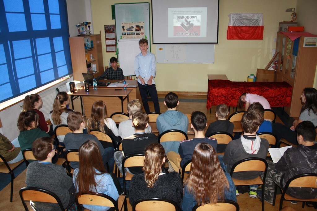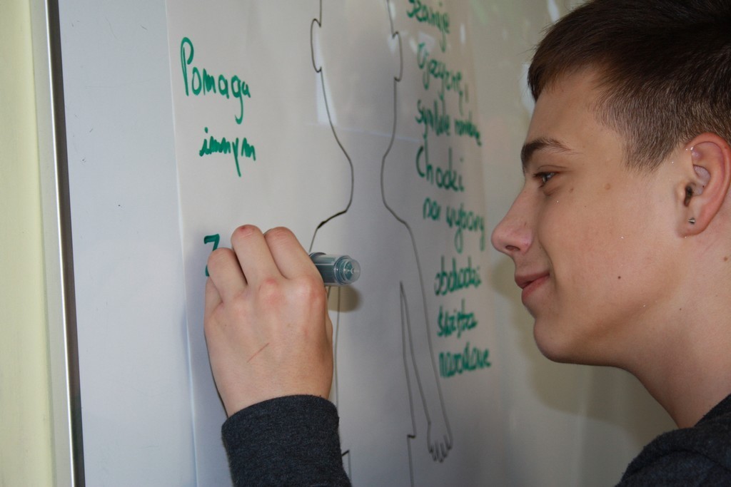 W czwartek koordynatorzy i koordynatorki Festiwalu przeprowadzili/przeprowadziły warsztaty w zespołach klasowych na temat „Porozmawiajmy o patriotyzmie”. Uczniowie i uczennice rozmawiali z prowadzącymi, czym dla nas jest współczesny patriotyzm, czym jest niepodległość. Odpowiadali na pytania, co może zagrażać naszej wolności i demokracji. Rozmawialiśmy na trudne tematy związane z II wojną światową, faszyzmem i nacjonalizmem, zastanawialiśmy się nad postępowaniem człowieka w sytuacjach zagrożenia życia, mówiliśmy o tym, że to nie narodowość czy religia świadczą o tym, że postępujemy właściwie i podejmujemy dobre decyzje.