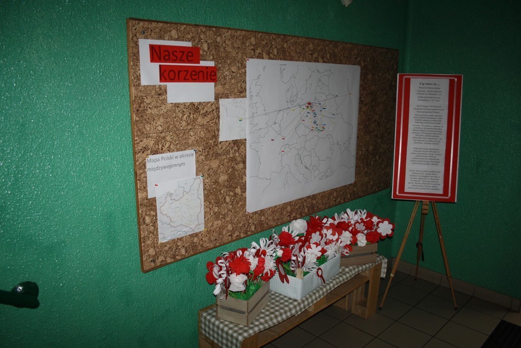 Ogłosiliśmy konkurs fotograficzny a także poprosiliśmy naszych kolegów i koleżanki, aby przekazali nam informacje o swoich przodkach. Mogli oni wykonać plakaty oraz przekazać nam informacje o miejscu urodzenia swoich pradziadków. Uzyskana wiedza posłużyła nam do przygotowania mapy „Nasze korzenie”. Duża część naszych pradziadków o prababć urodziła się w okresie międzywojennym. Pokazaliśmy rówieśnikom i rówieśnicom, z jak różnych miejsc na świecie pochodzimy.
