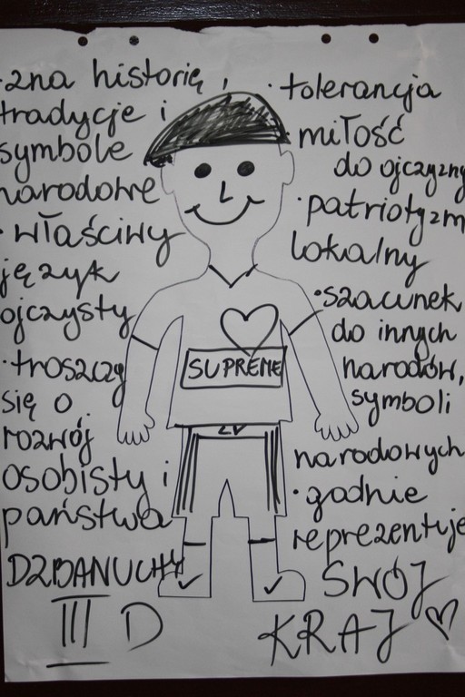 W piątek zaprosiliśmy naszych rówieśników i rówieśnice do gry korytarzowej. Na przygotowanych przez nas punktach uczniowie i uczennice mogli/mogły sprawdzać swoją wiedzę o Polsce, poznawać i tańczyć tańce regionalne, trudny polski język a także język kaszubski, tworzyć demotywatory oraz wykonywać patriotyczne zdjęcia. Klasa IIIC, która była odpowiedzialna za przygotowanie Festiwalu, wykonała plakaty na temat Polaków, którzy otrzymali medale „Sprawiedliwy wśród narodów świata”. Wszystkie wykonywane zdania były punktowane.